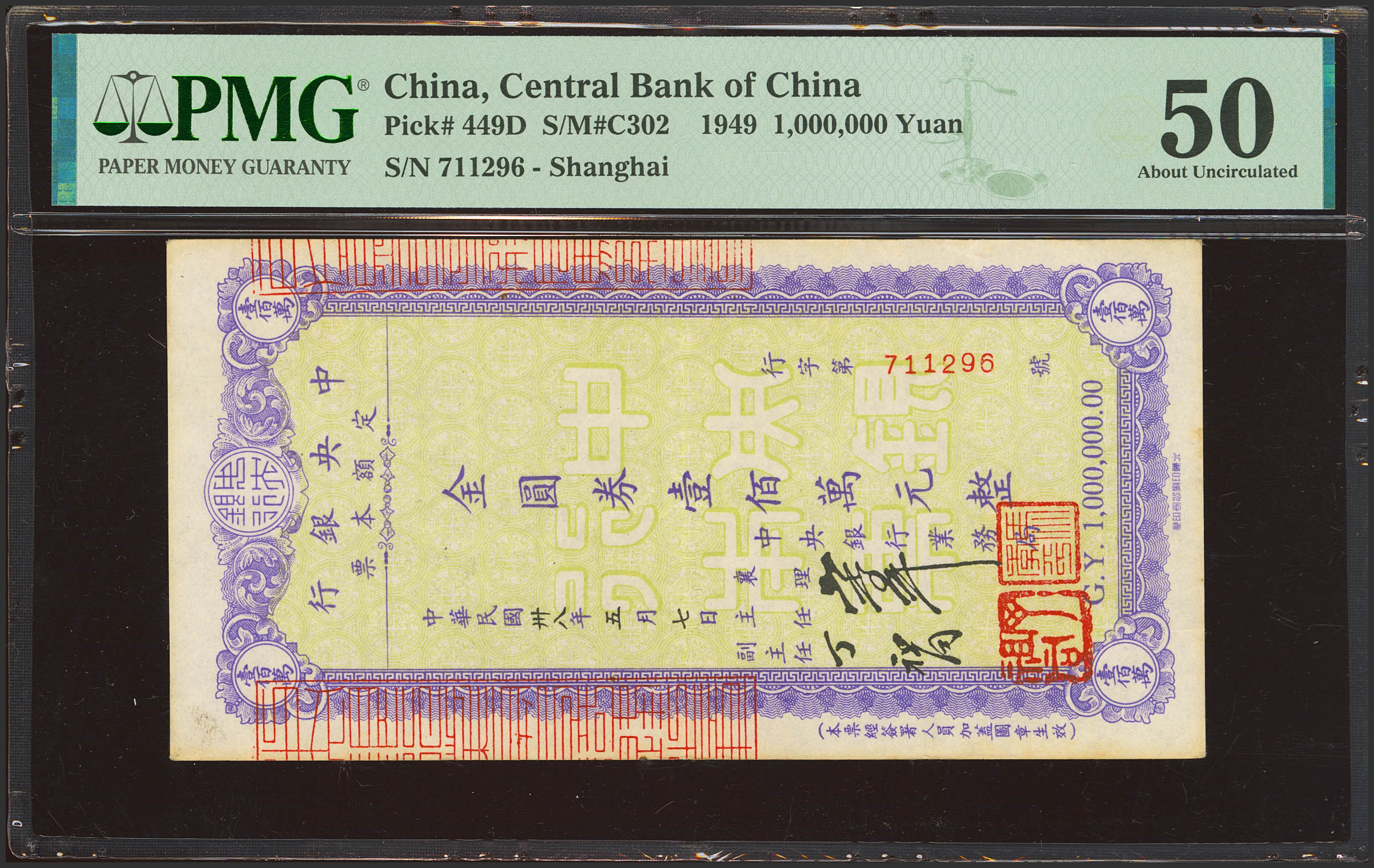 CHINA. 1000000 Gold Yuan. 1949. Central Bank of China. Circulating Cashier's Check. Shanghai. (Pick: 449D, SM: C302). PMG50.