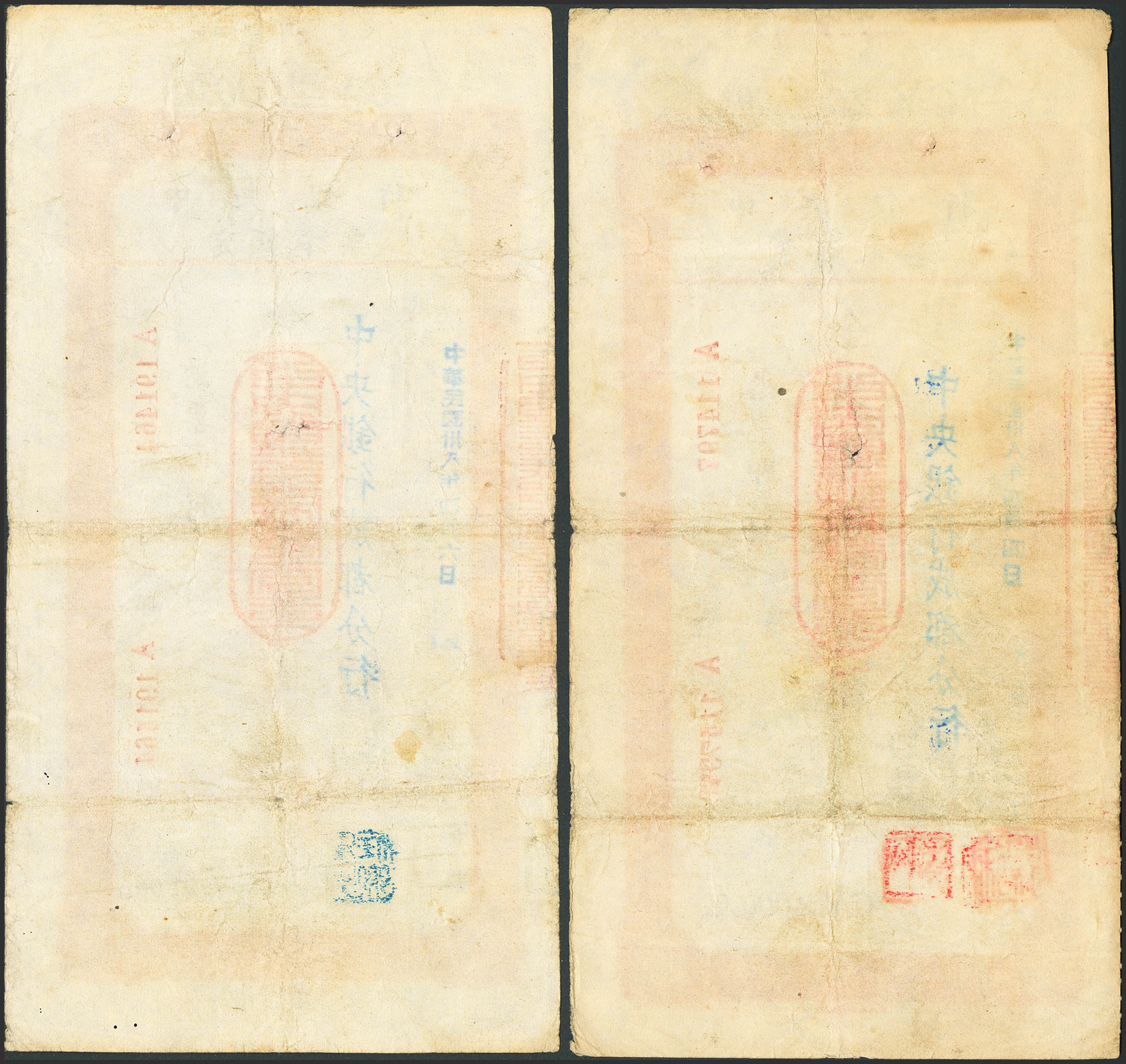 CHINA. Lot of 2 notes of 2000 Gold Yuan. 1948. Central Bank. Chengtu Bank. (Pick: 449Y). Very Fine.