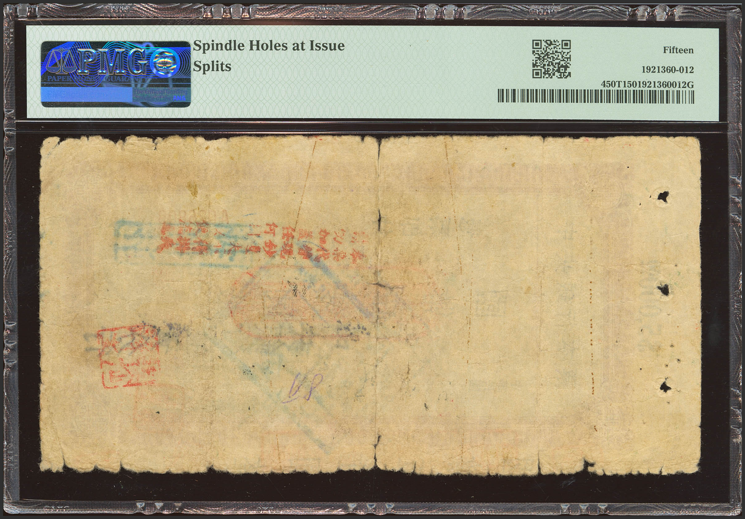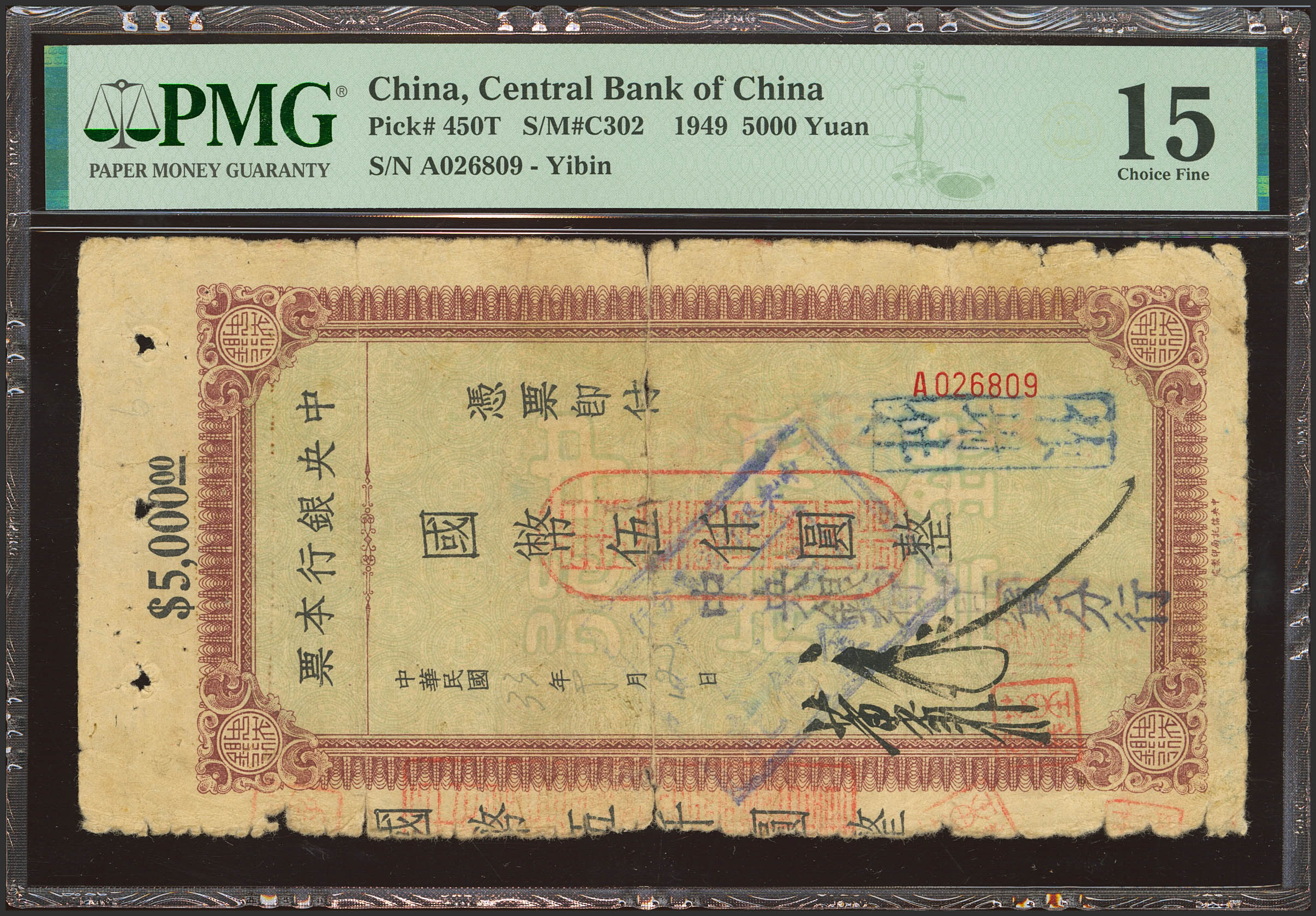 CHINA. 5000 Gold Yuan. 1944. Central Bank of China. Yibin. (Pick: 450T, SM: C302). PMG15 (spindle holes at issue, splits)