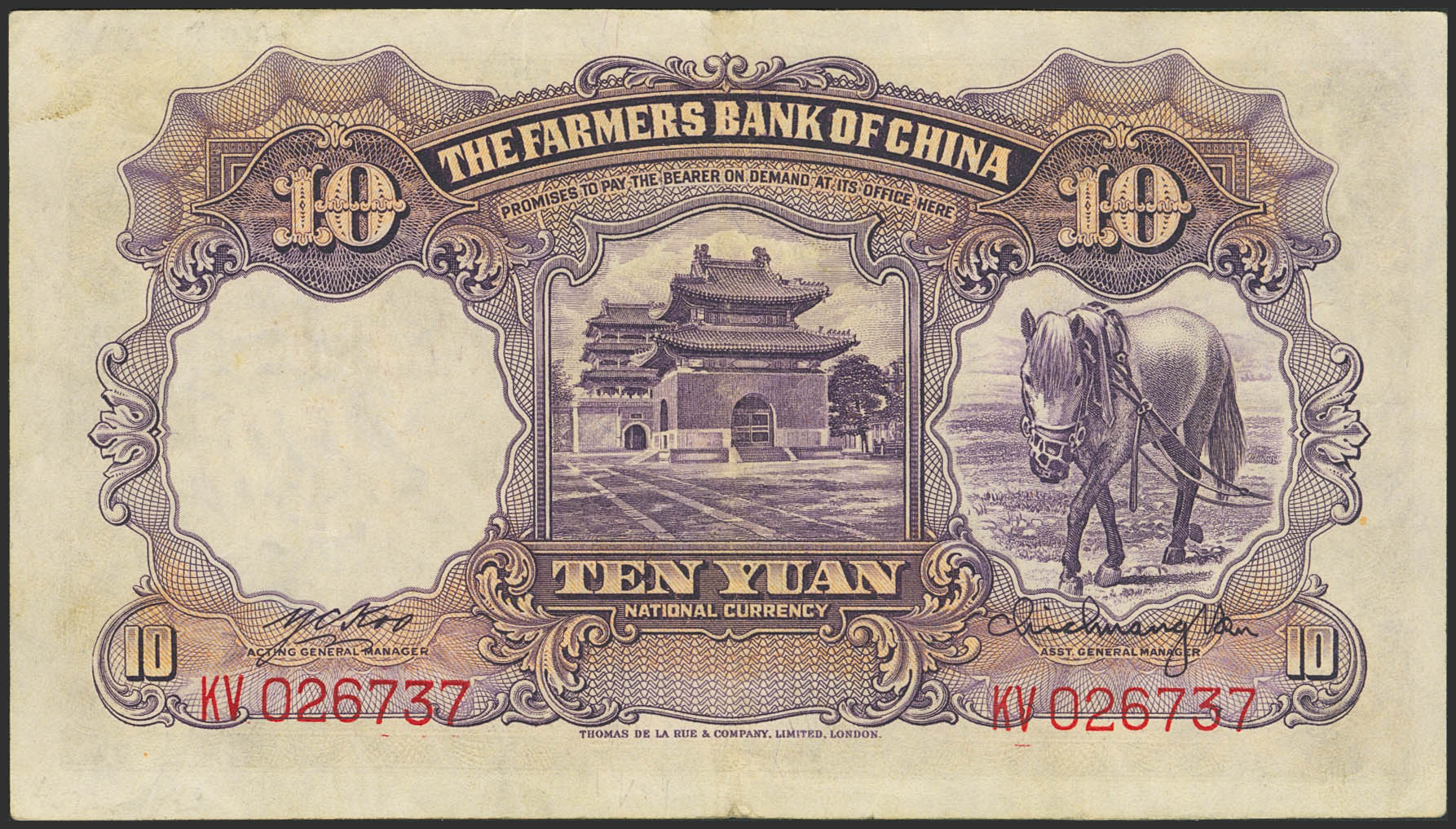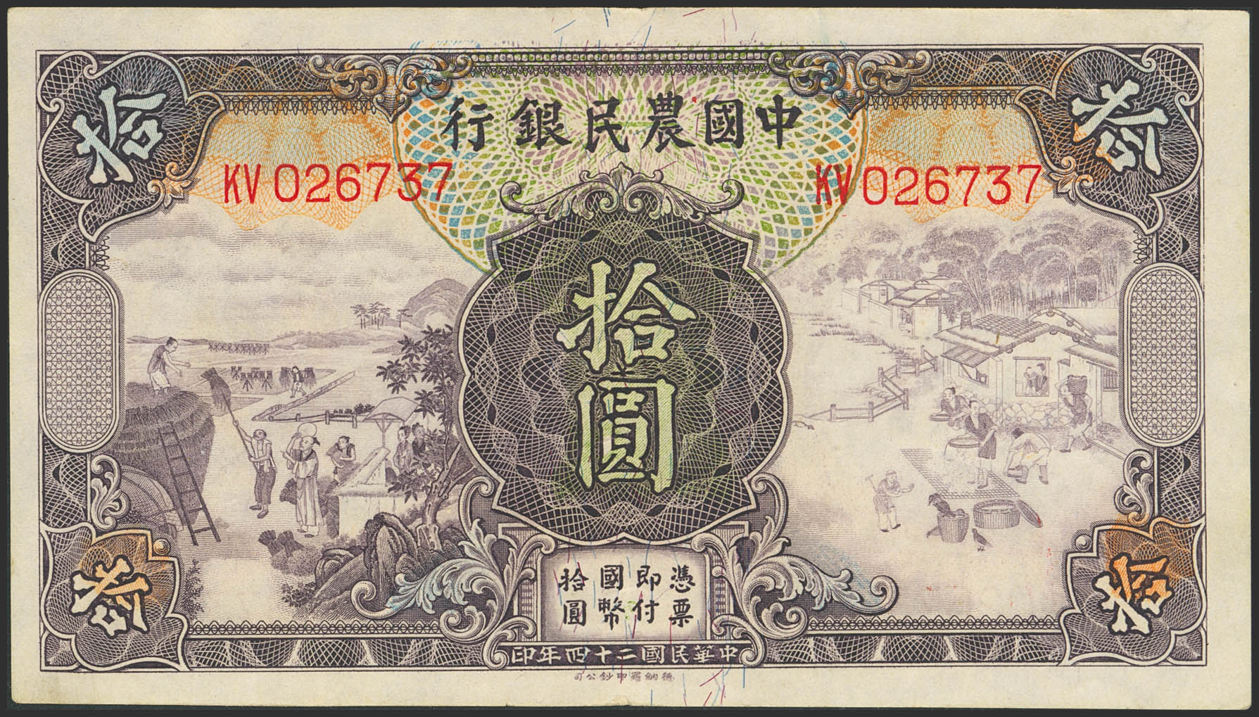 CHINA. 10 Yuan. 1935. Farmers Bank of China. (Pick: 459a). More than Very Fine.
