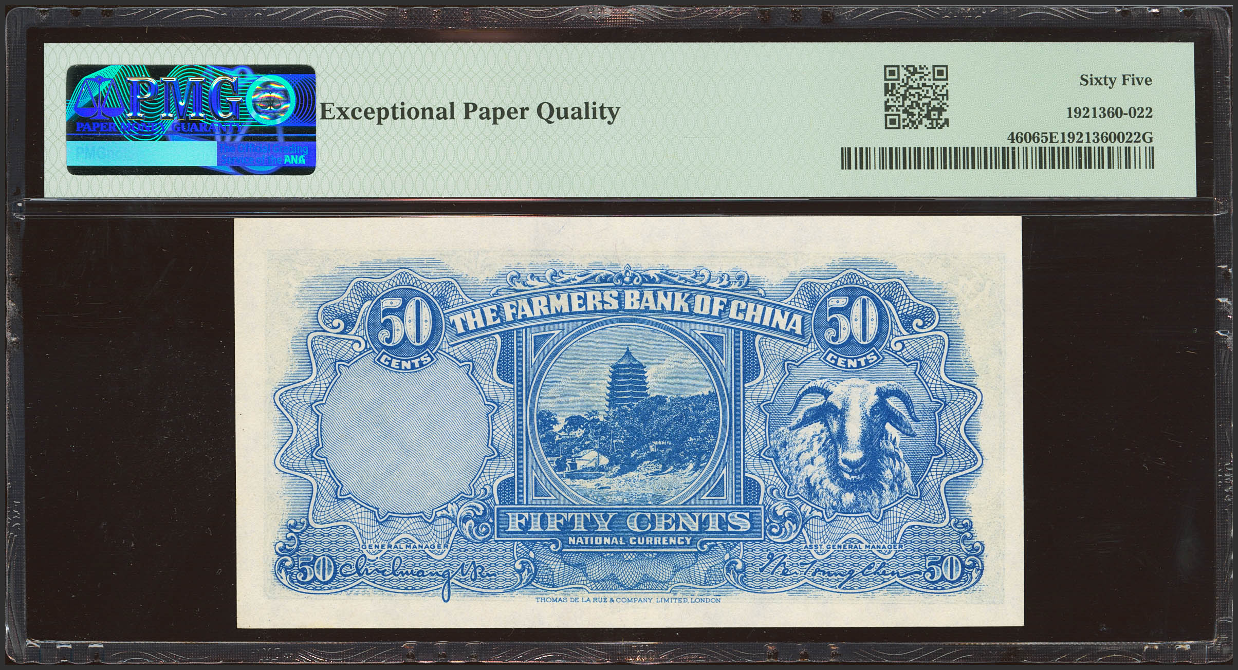 CHINA. 50 Cents. 1936. Farmers Bank of China. (Pick: 460, SM: C290-40). PMG65EPQ.