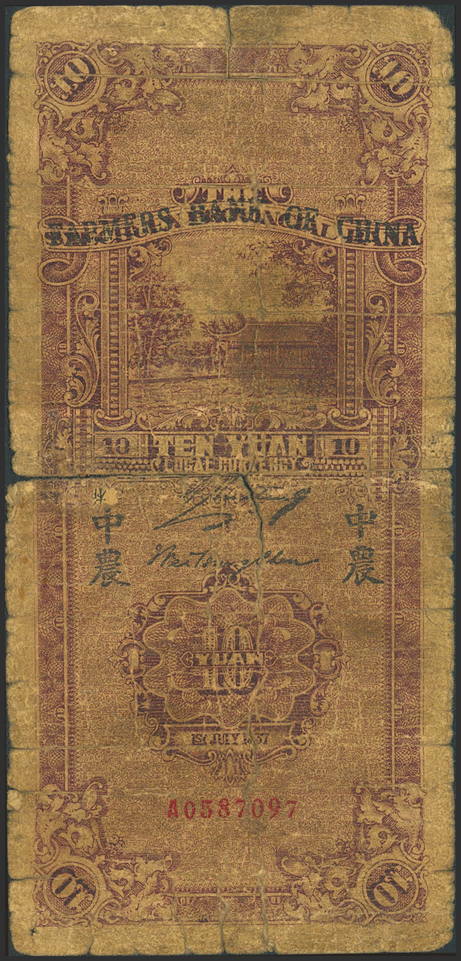 English CHINA. 10 Yuan. 1940. Farmers Bank of China. (Pick: 471). Good.
