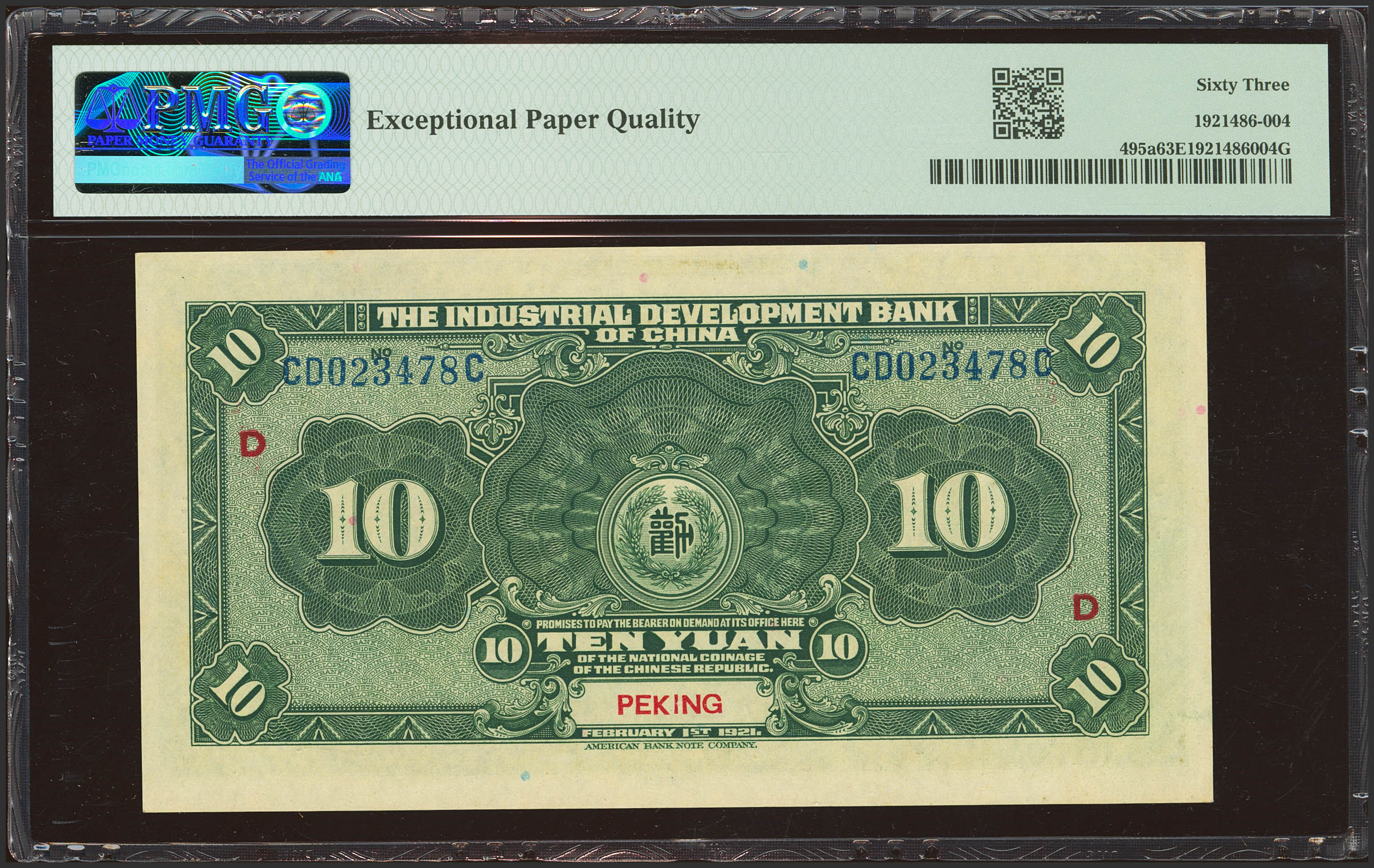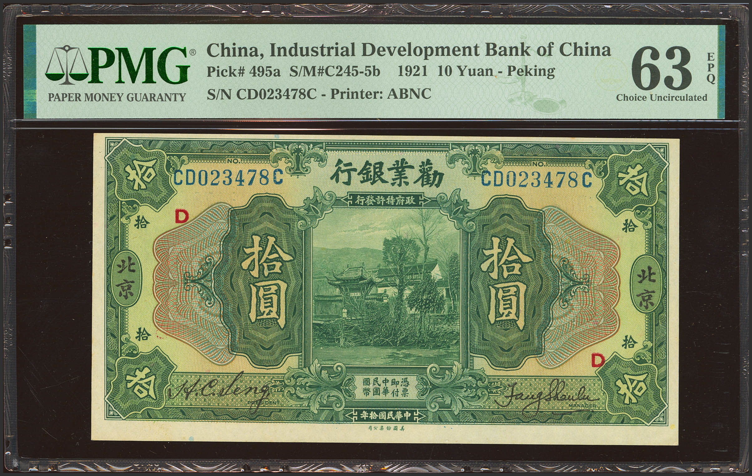 CHINA. 10 Yuan. 1 February 1921. Industrial Development Bank of China. Beijing. (Pick: 495a, SM: C245-5b). PMG63EPQ.