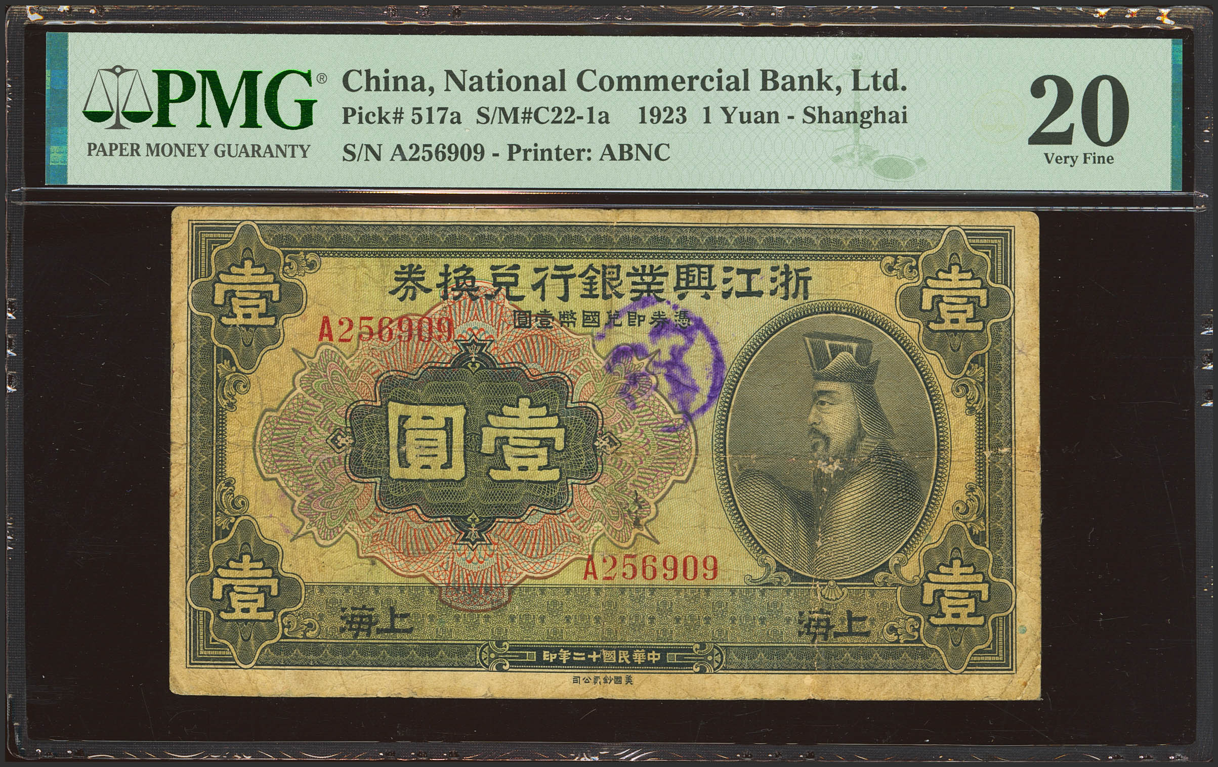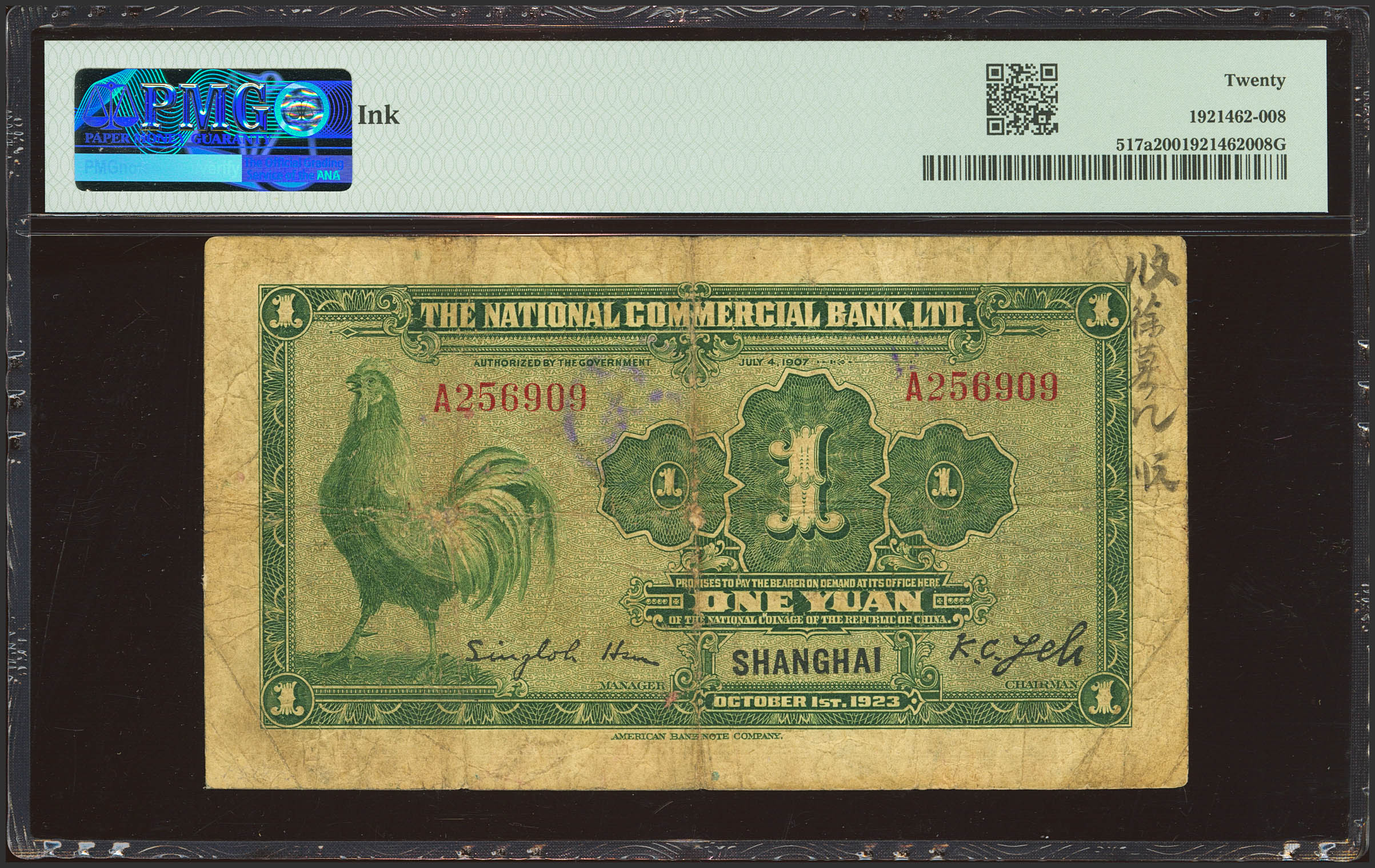 CHINA. 1 Yuan. 1 October 1923. National Commercial Bank. Shanghai. (Pick: 517a, SM: C22-1a). PMG20 (ink).