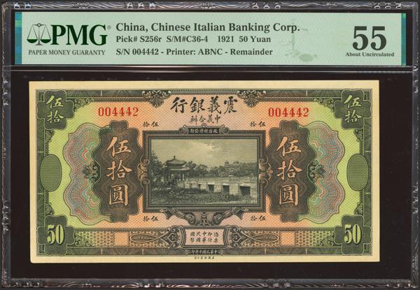 CHINA. 50 Yuan. 15 September 1921. Chinese Italian Banking Corporation. (Pick: S256, SM: C36-4). PMG55. Automatically generated translation