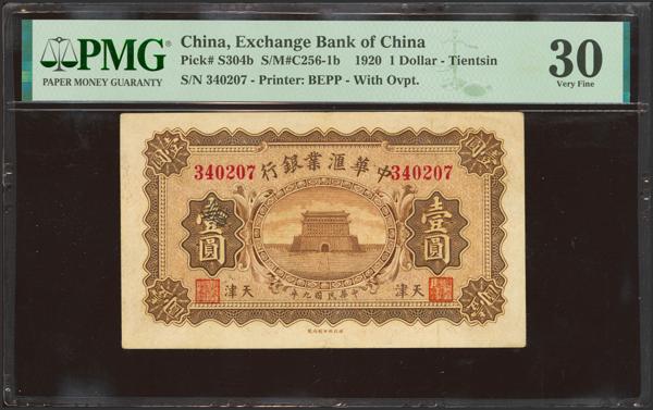 CHINA. 1 Dollar. 1 January 1920. Exchange Bank of China. (Pick: S304b, SM: C256-1b). PMG30. Automatically generated translation