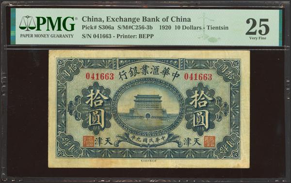 CHINA. 10 Dollars. 1 January 1920. Exchange Bank of China. (Pick: S305a, SM: C256-3b). 1mm cut on the bottom margin. PMG25. Automatically generated translation