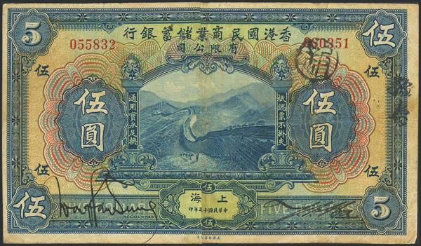 CHINA. 5 Dollars. 1 December 1924. National Commercial and Savings Bank. Shanghai. (Pick: S453ar, SM: H100-2a). PMG30 (pencil, minor stains) Automatically generated translation