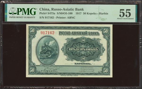 CHINA. 50 Kopeks. (1917ca). Russo Asiatic Bank. Harbin. (Pick: S473a, SM: O5-100). PMG55. Automatically generated translation