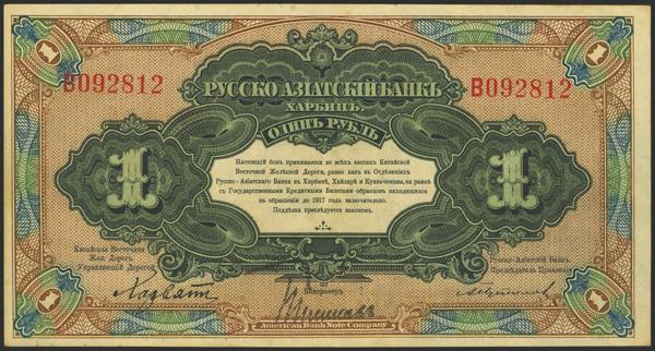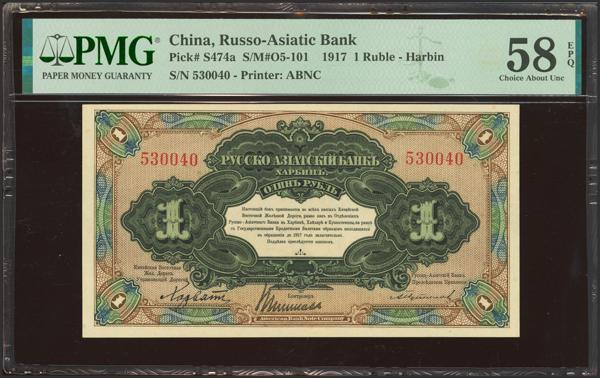 CHINA. 1 Ruble. (1917ca). Russo Asiatic Bank. Harbin. (Pick: S474a, SM: O5-101). PMG58EPQ. Automatically generated translation