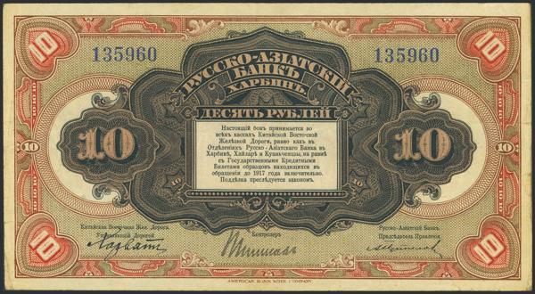 CHINA. 10 Rubles. (1917ca). Russo Asiatic Bank. Harbin. (Pick: S476a). More than Very Fine. Automatically generated translation