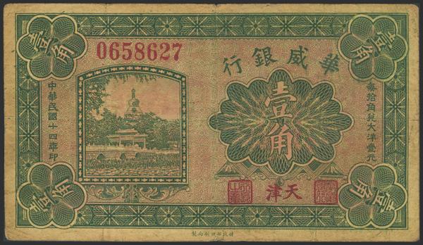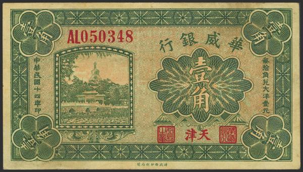 CHINA. 10 Cents. 1 October 1925. Sino-Scandinavian Bank. Tientsin. (Pick: S595). More than Fine. Automatically generated translation