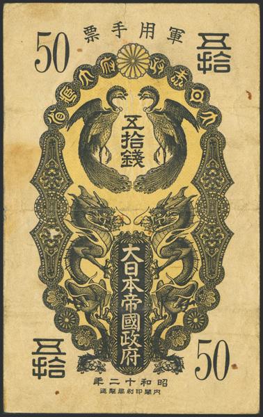 CHINA-JAPANESE MILITARY. 50 Sen. 1937. Japanese Imperial Government. (Pick: M2a). Very Fine.