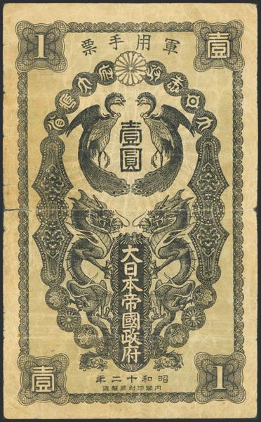 CHINA-JAPANESE MILITARY. 1 Yen. 1937. Japanese Imperial Government. (Pick: M3a). More than Fine.