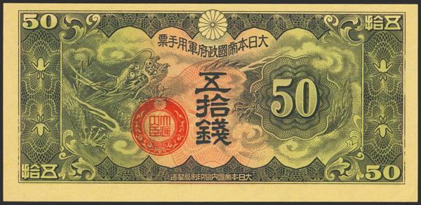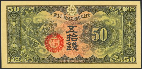 CHINA-JAPANESE MILITARY. 50 Sen. (1938ca). Japanese Imperial Government. (Pick: M14). Less than Uncirculated.
