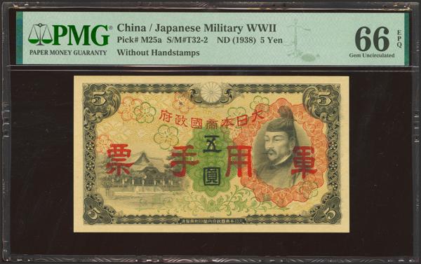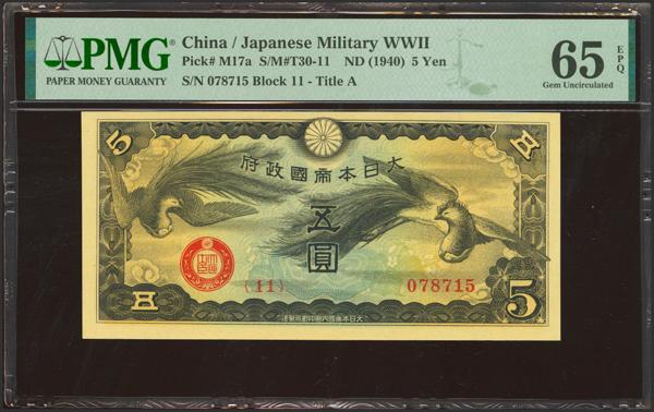 CHINA-JAPANESE MILITARY. 5 Yen. (1940ca). Japanese Imperial Government. (Pick: M17a, SM: T30-11). PMG65EPQ.
