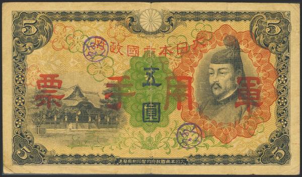 CHINA-JAPANESE MILITARY. 5 Yen. (1940ca). Japanese Imperial Government. (Pick: M18a). Very Fine.