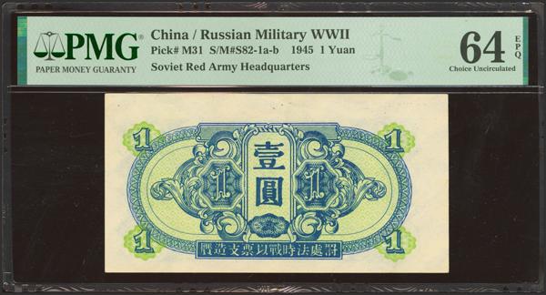 CHINA-SOVIET MILITARY. 1 Yuan. 1945. Soviet Red Army. (Pick: M31, SM: S82-1a-b). PMG64EPQ.