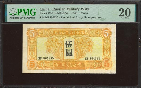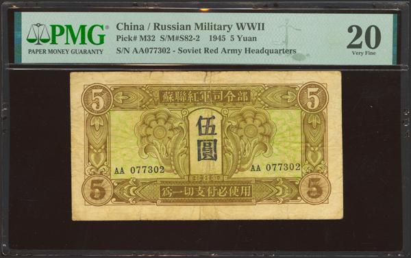 CHINA-SOVIET MILITARY. 5 Yuan. 1945. Soviet Red Army. (Pick: M32, SM: S82-2). PMG20 (repaired).