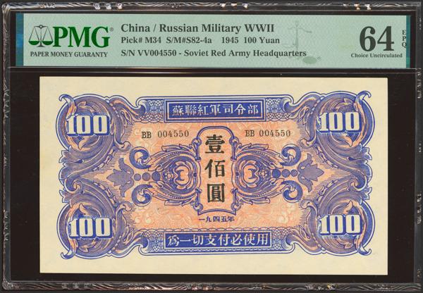 CHINA-SOVIET MILITARY. 100 Yuan. 1945. Soviet Red Army. (Pick: M34, SM: S82-4a). PMG64EPQ.