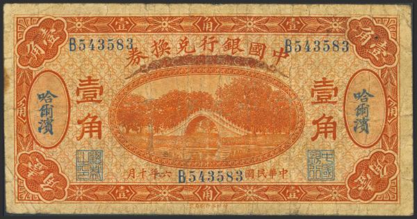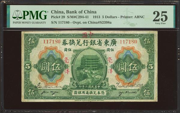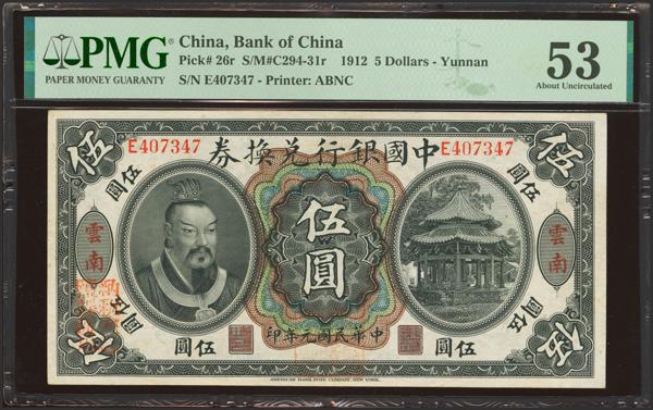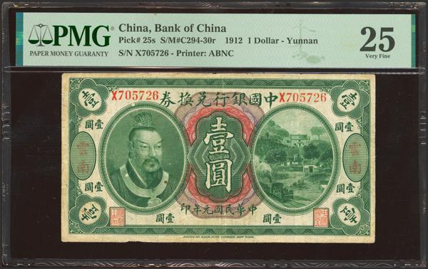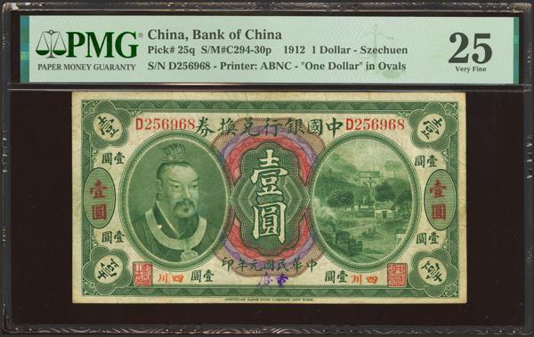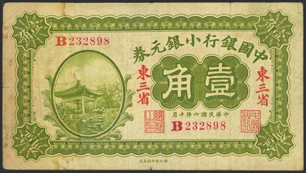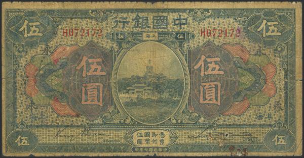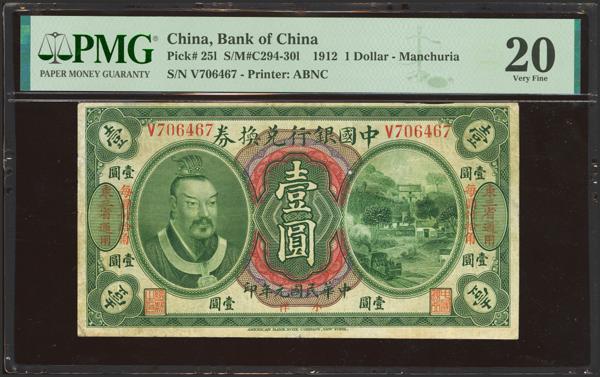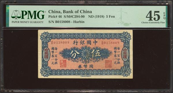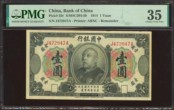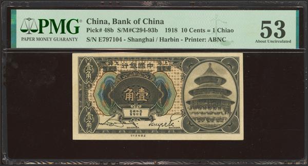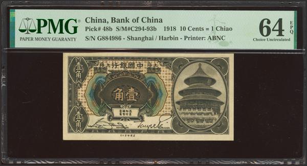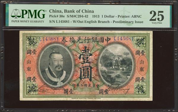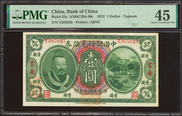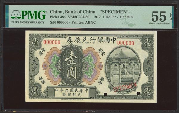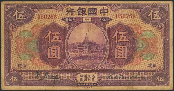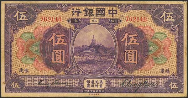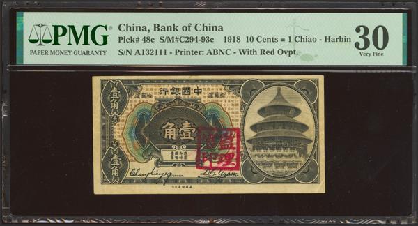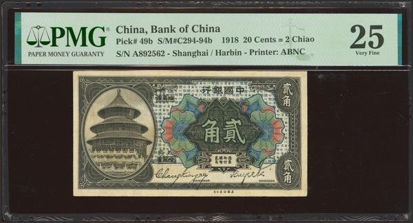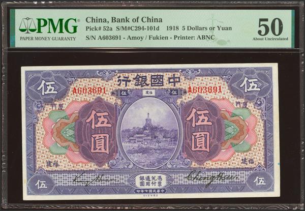 CHINA. 1 Yuan. September 1918. Bank of China. Shantung. Place of issue TSINGTAU canceled with an overprint, we are unaware of this variant and the reason for this cancellation. (Pick: 51u). PMG15 (tsingtau overprint blacked out).