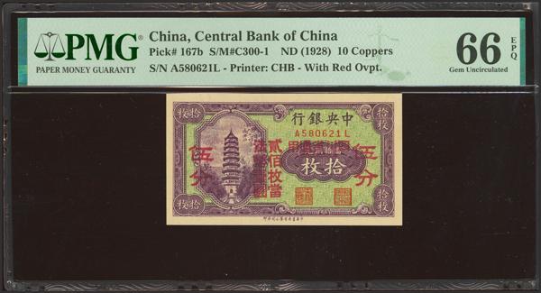 CHINA. 10 Coppers. (1928ca). Central Bank of China. (Pick: 167b, SM: C300-1). PMG66EPQ. Automatically generated translation