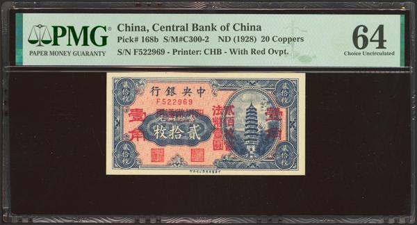 CHINA. 20 Coppers. (1928ca). Central Bank of China. (Pick: 168b, SM: C300-2). PMG64. Automatically generated translation