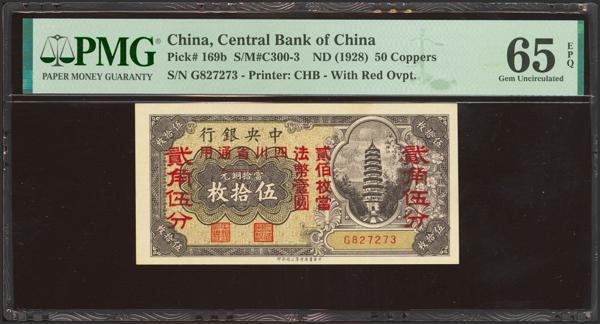 CHINA. 50 Coopers. (1928ca). Central Bank of China. (Pick: 169b, SM: C300-3). PMG65EPQ. Automatically generated translation