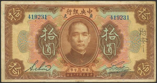CHINA. 10 Dollars. 1923. Central Bank of China. (Pick: 176a). Very Fine. Automatically generated translation
