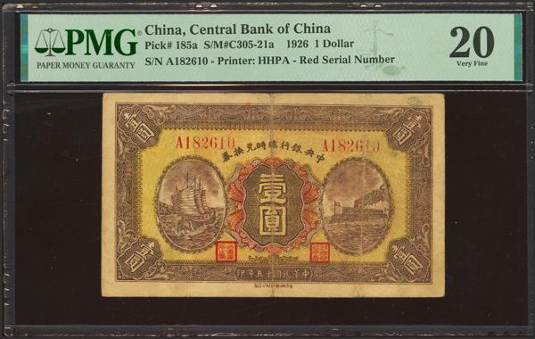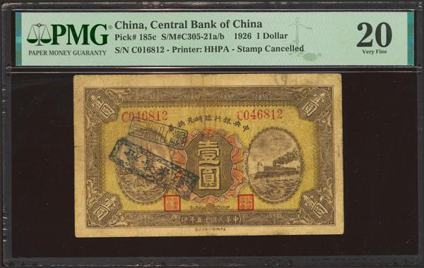 CHINA. 1 Yuan. 1926. Central Bank of China. (Pick: 185a, SM: C305-21a). PMG20 (ink stamp). Automatically generated translation