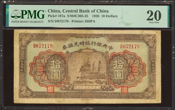 CHINA. 10 Dollars. 1926. Central Bank of China. (Pick: 187a, SM: C305-25). PMG20. Automatically generated translation