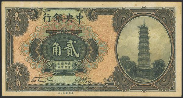 CHINA. 20 Cents. (1924ca). Central Bank of China. (Pick: 194a). More than Very Fine. Automatically generated translation