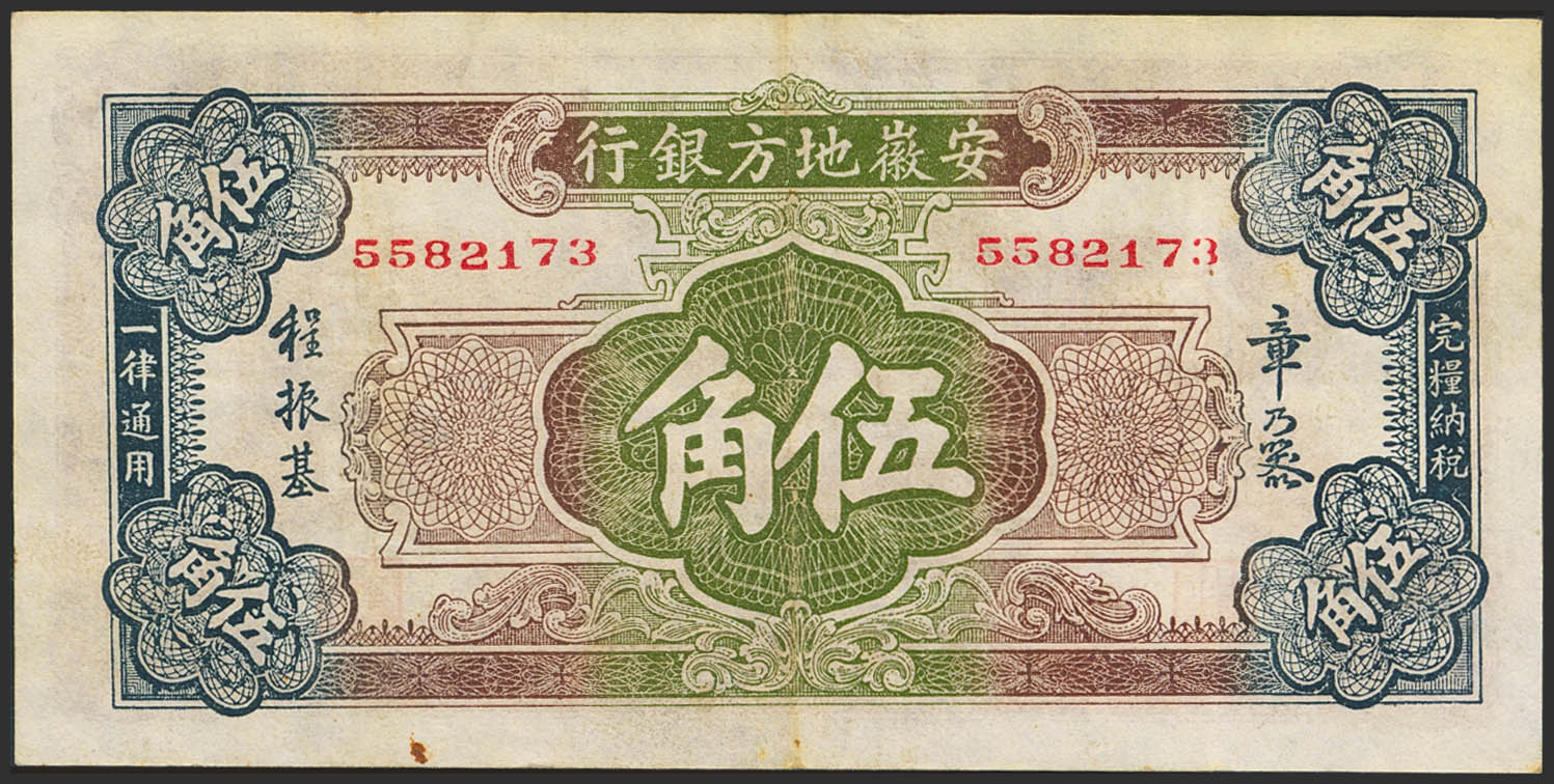 CHINA. 5 Chiao. (1937ca). Anhwai Regional Bank. (Pick: S808). More than Very Fine.
