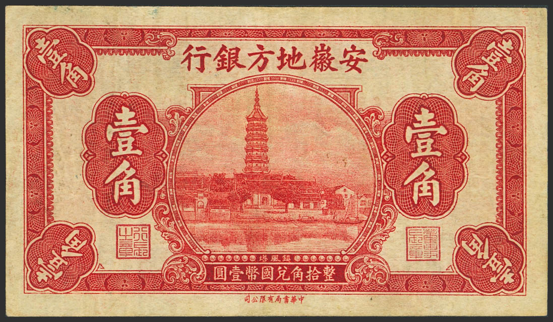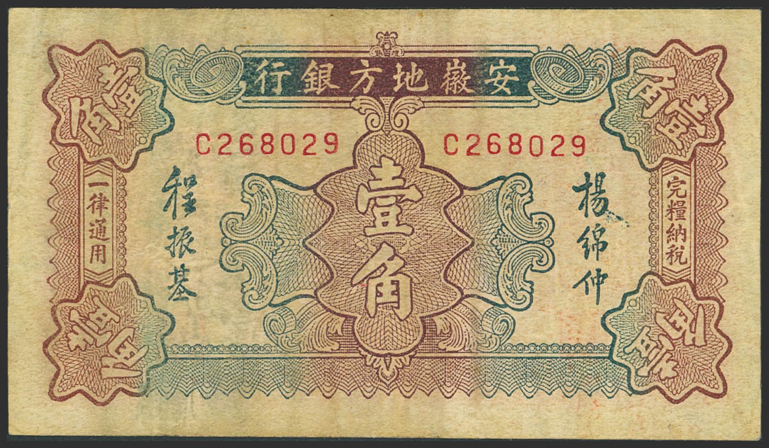 CHINA. 1 Chiao. (1937ca). Anhwai Regional Bank. (Pick: S813). Very Fine.