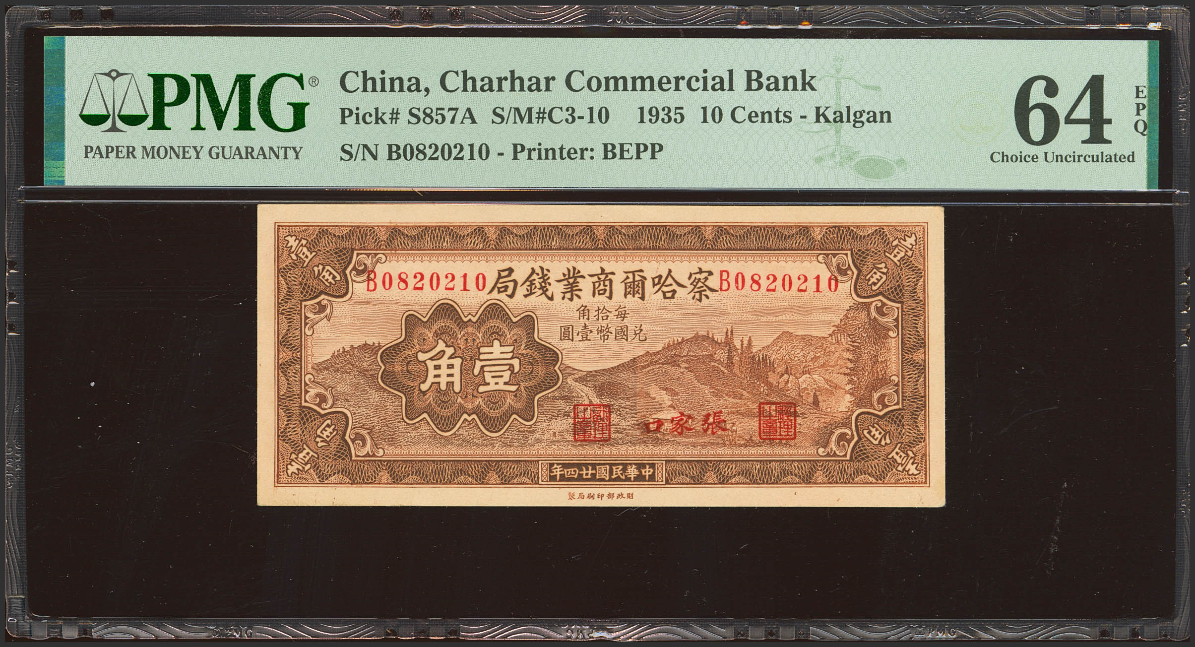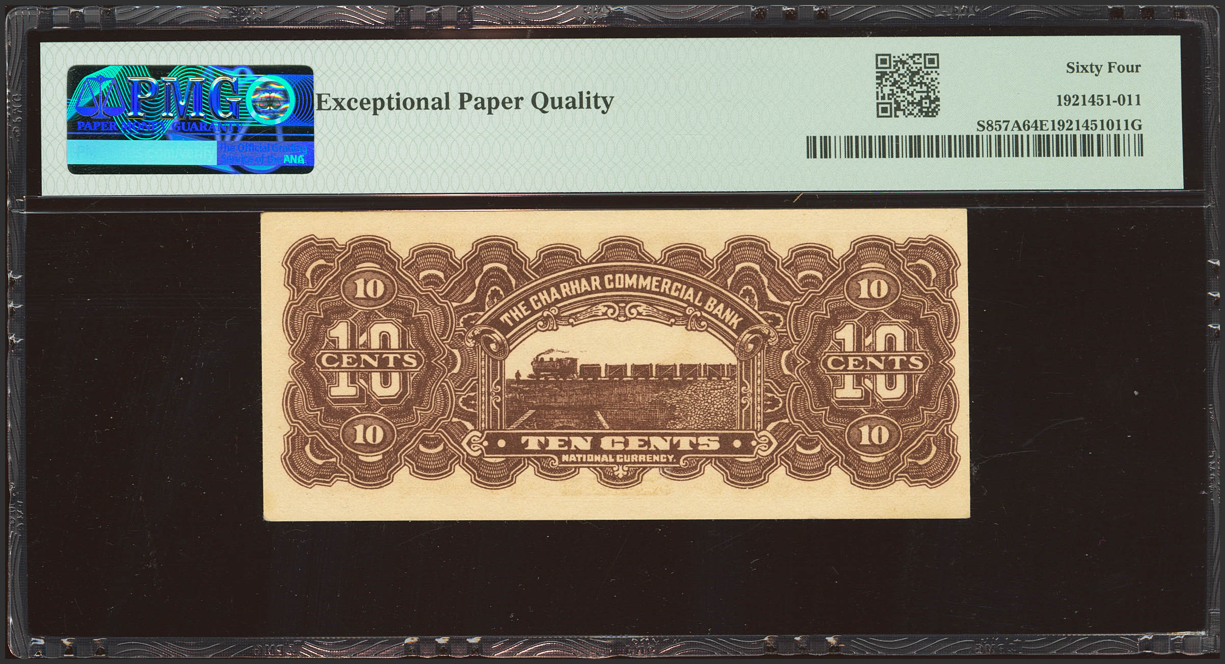 CHINA. 10 Cents. 1935. Charhar Commercial Bank. (Pick: S857A, SM: C3-10). PMG64EPQ.