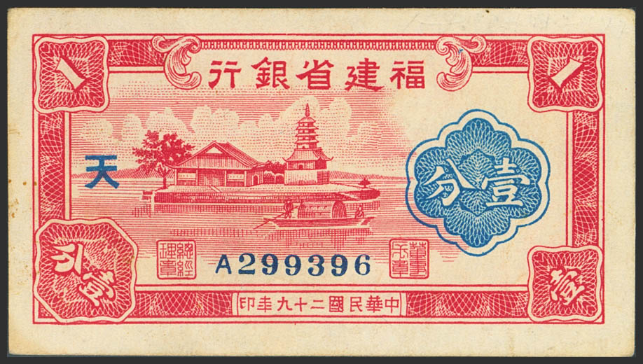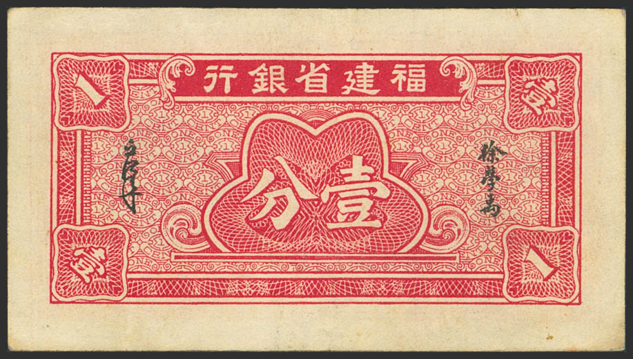CHINA. 1 Fen. 1940. Fukien Provincial Bank. (Pick: S1423). More than Extremely Fine.