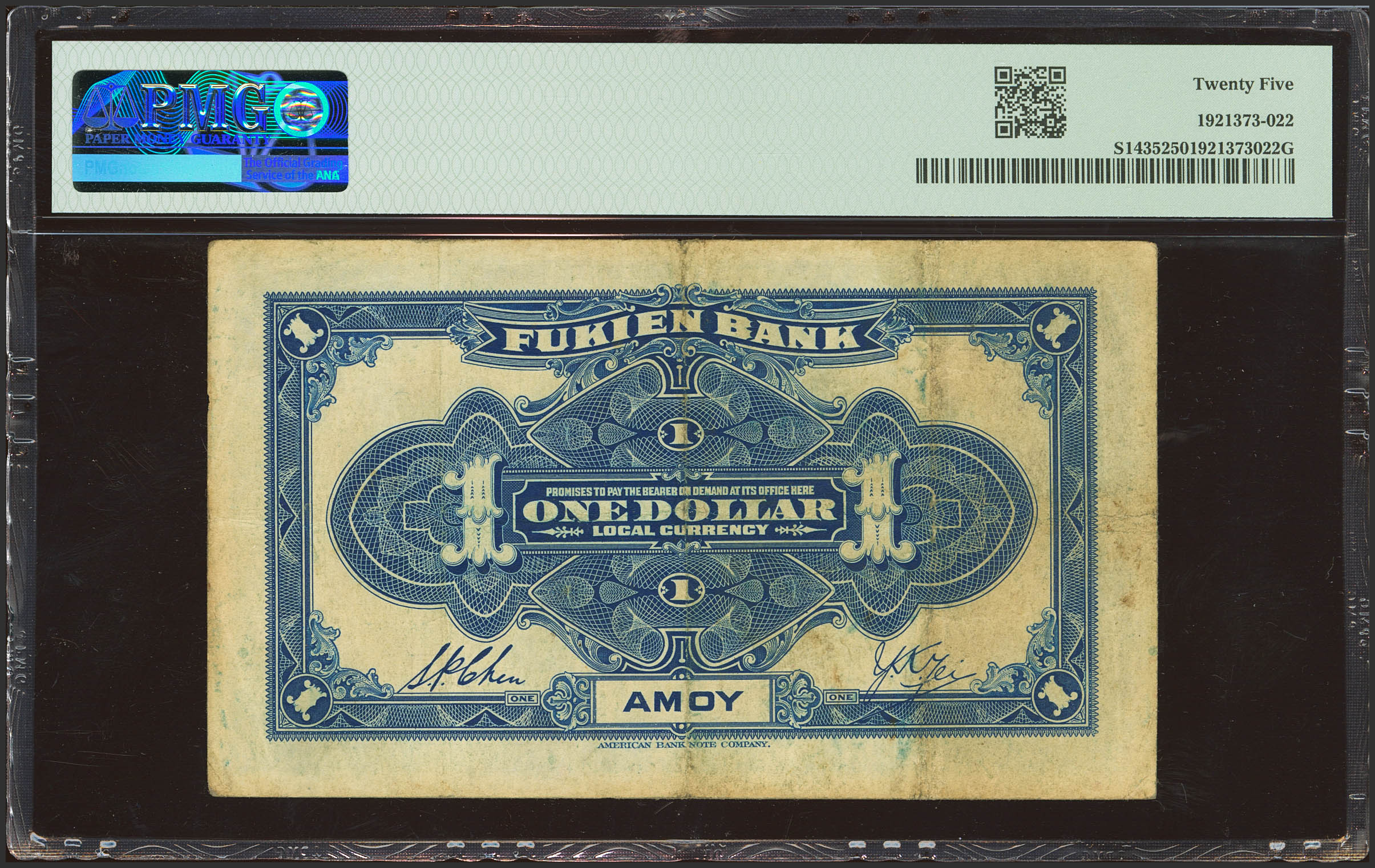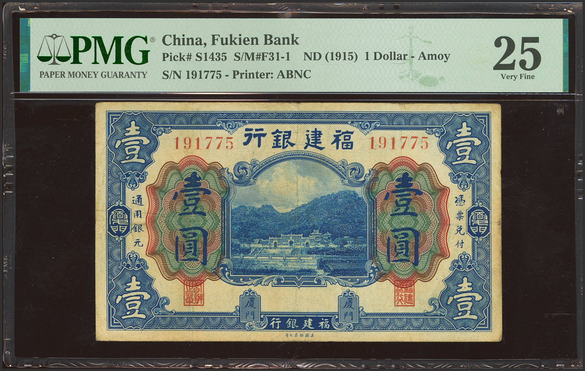 CHINA. 1 Dollar. (1935ca). Fukien Bank. Amoy. (Pick: S1435, SM: F31-1). PMG25.