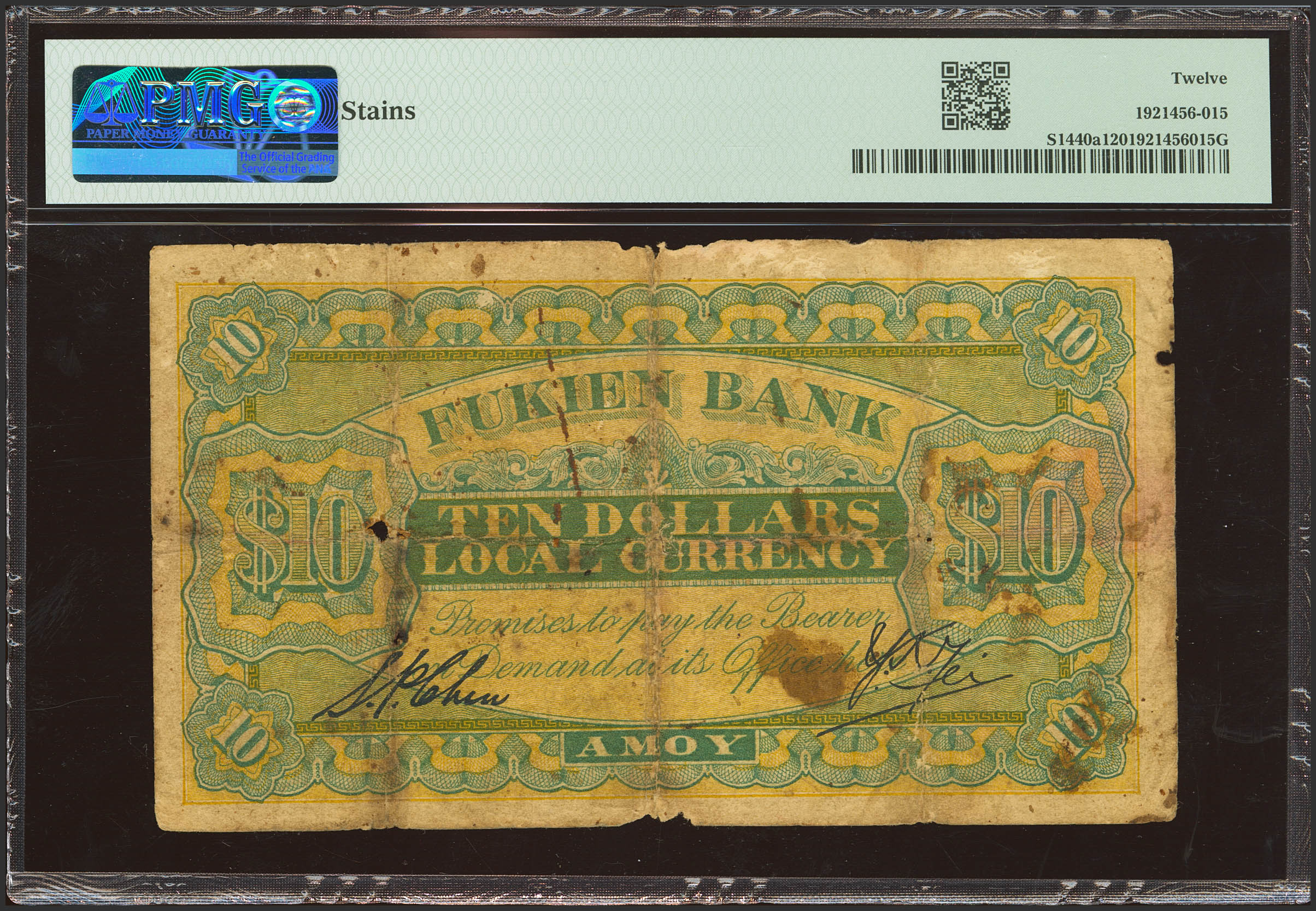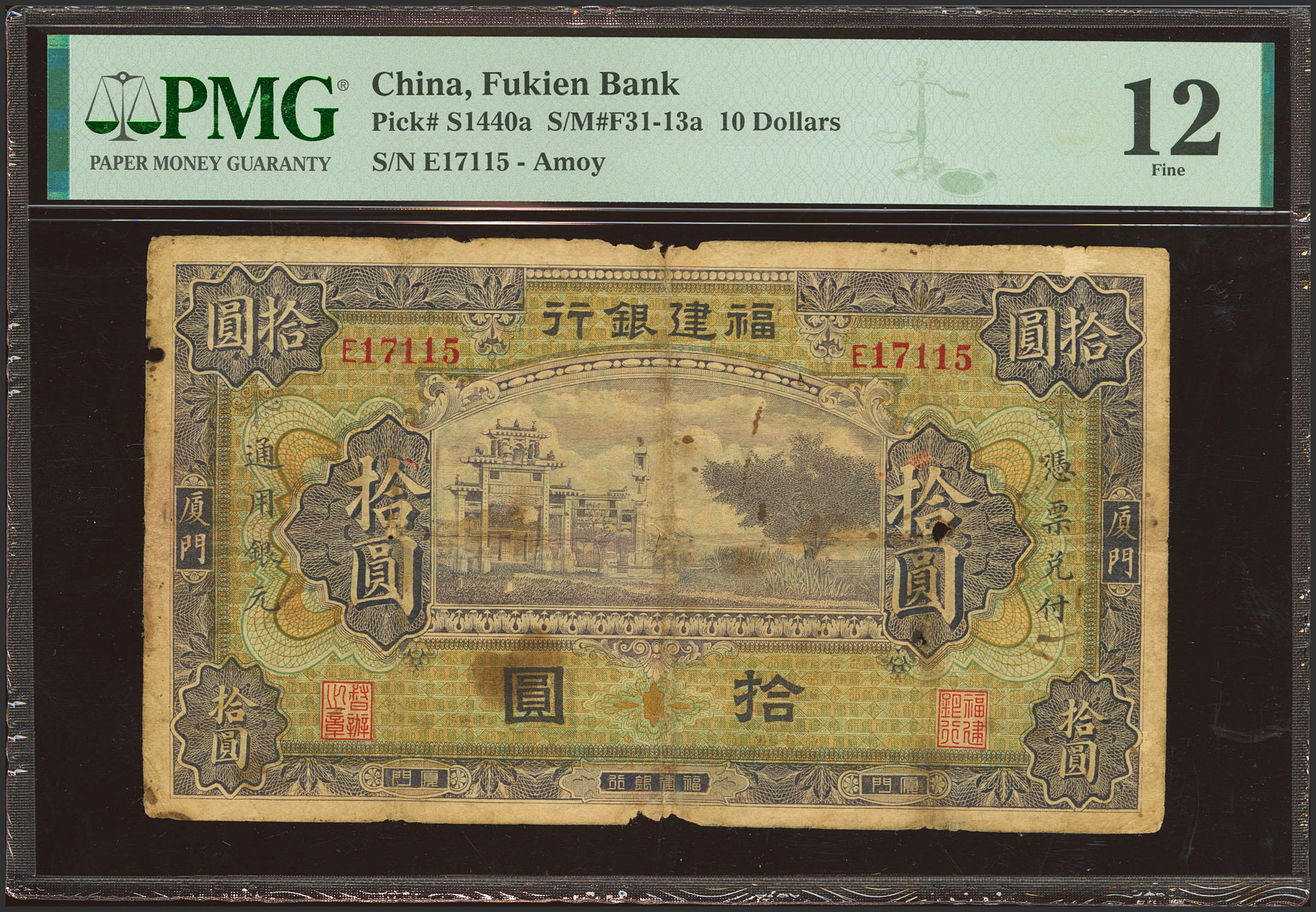 CHINA. 10 Dollars. Not Dated. Fukien Bank. Amoy. (Pick: S1440a, SM: F31-13a). PMG12 (stains).