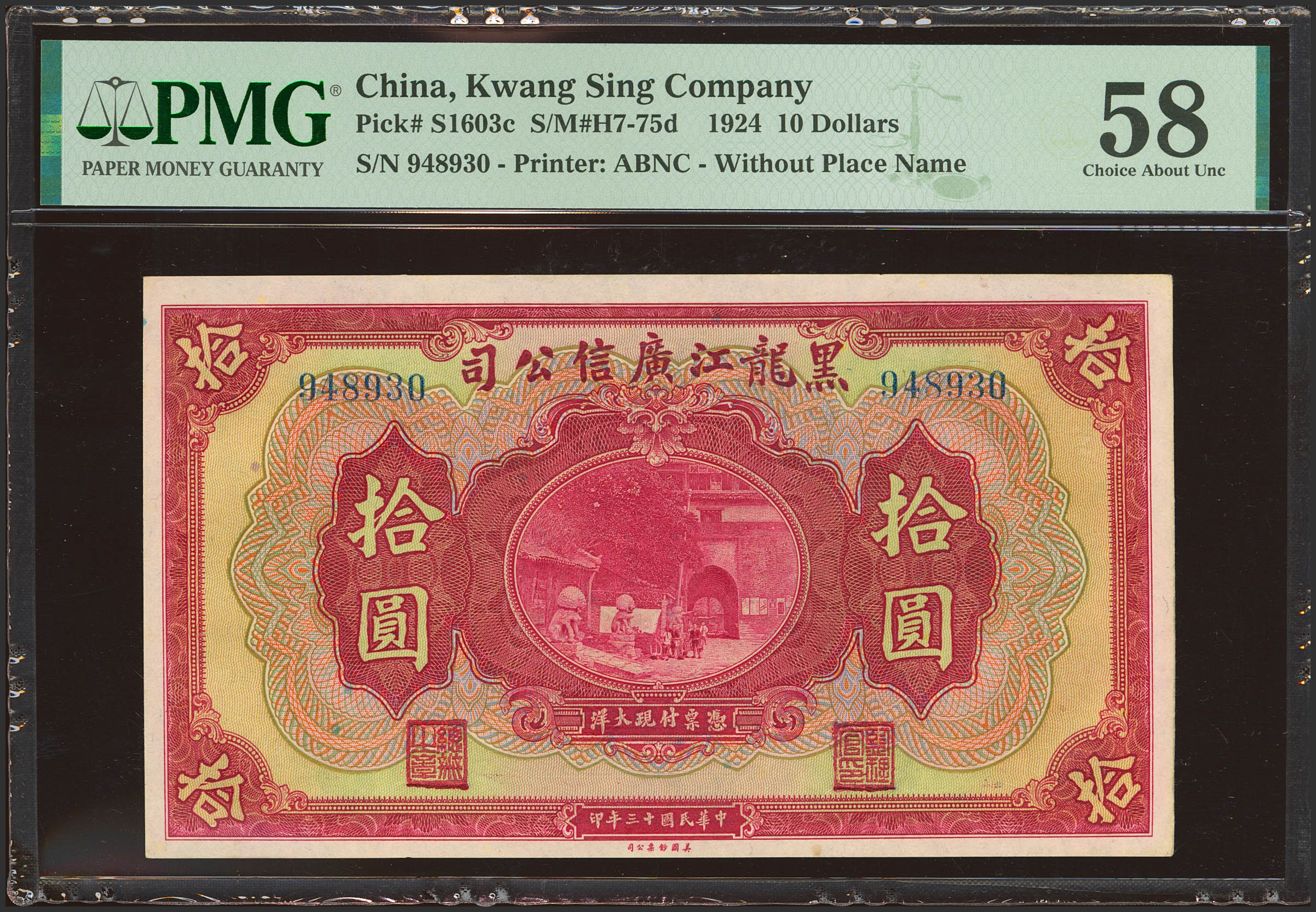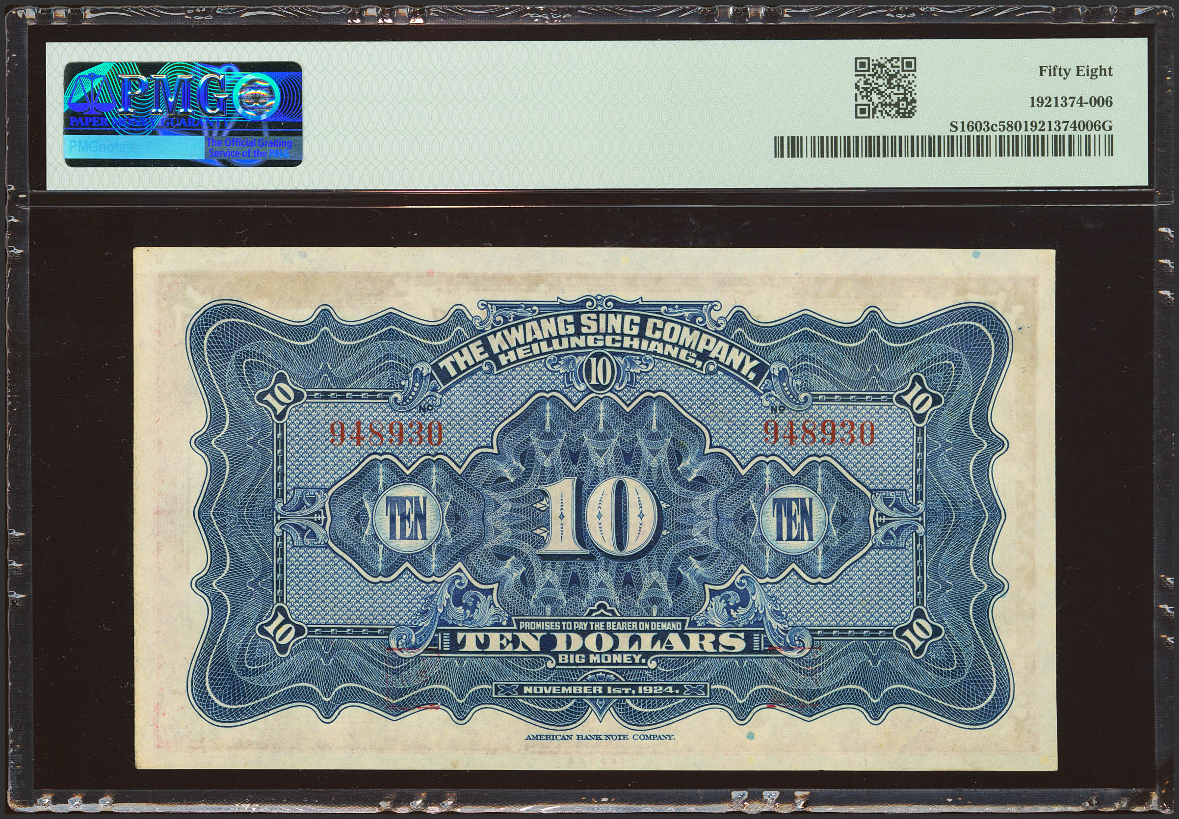 CHINA. 10 Dollars. 1 November 1924. Kuang Hsin Company. Heilungchiang. (Pick: S1603c, SM: H7-75d). PMG58.