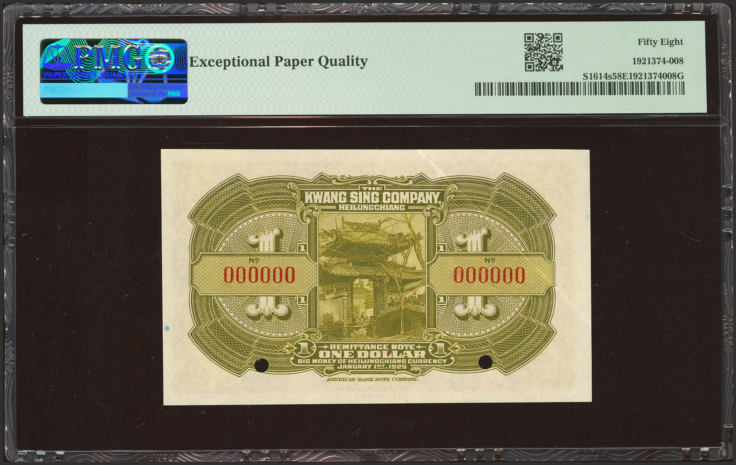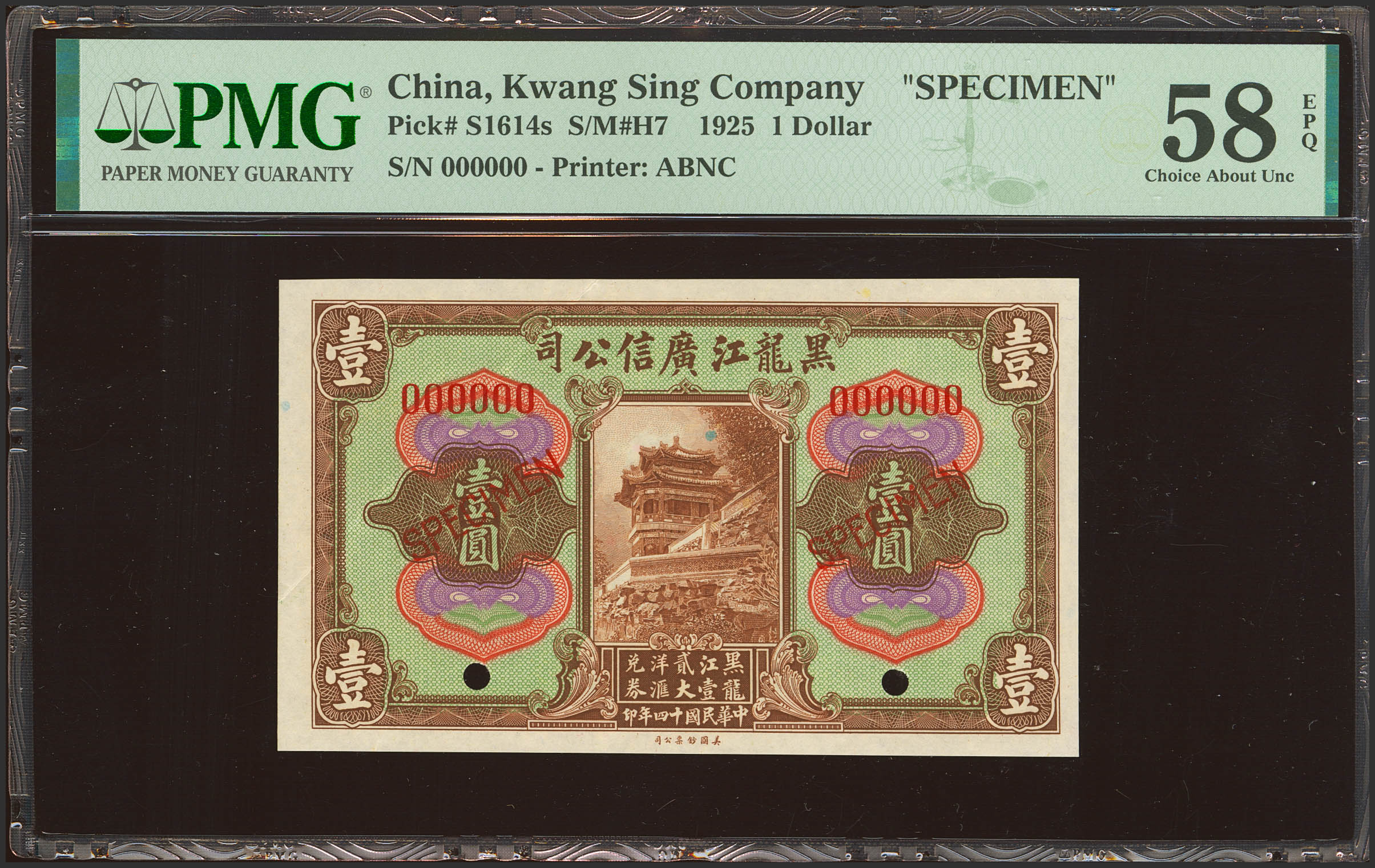 CHINA. 1 Dollar. 1 December 1925. Kwang Sing Company. Heilungchiang. Specimen. (Pick: S1614s, SM: H7). PMG58EPQ.