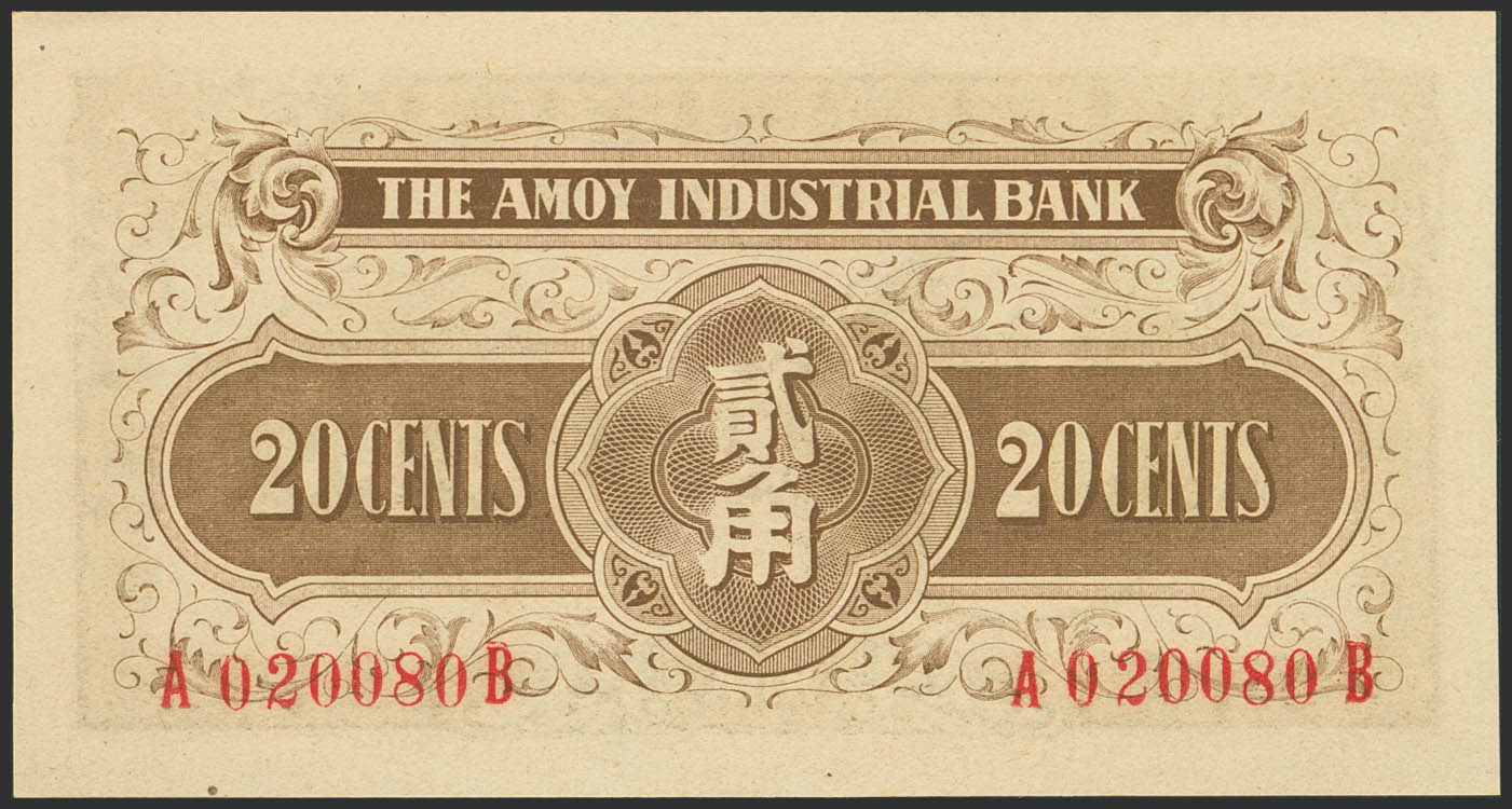 CHINA. 20 Cents. (1940ca). Amoy Industrial Bank. (Pick: S1657A). Uncirculated.