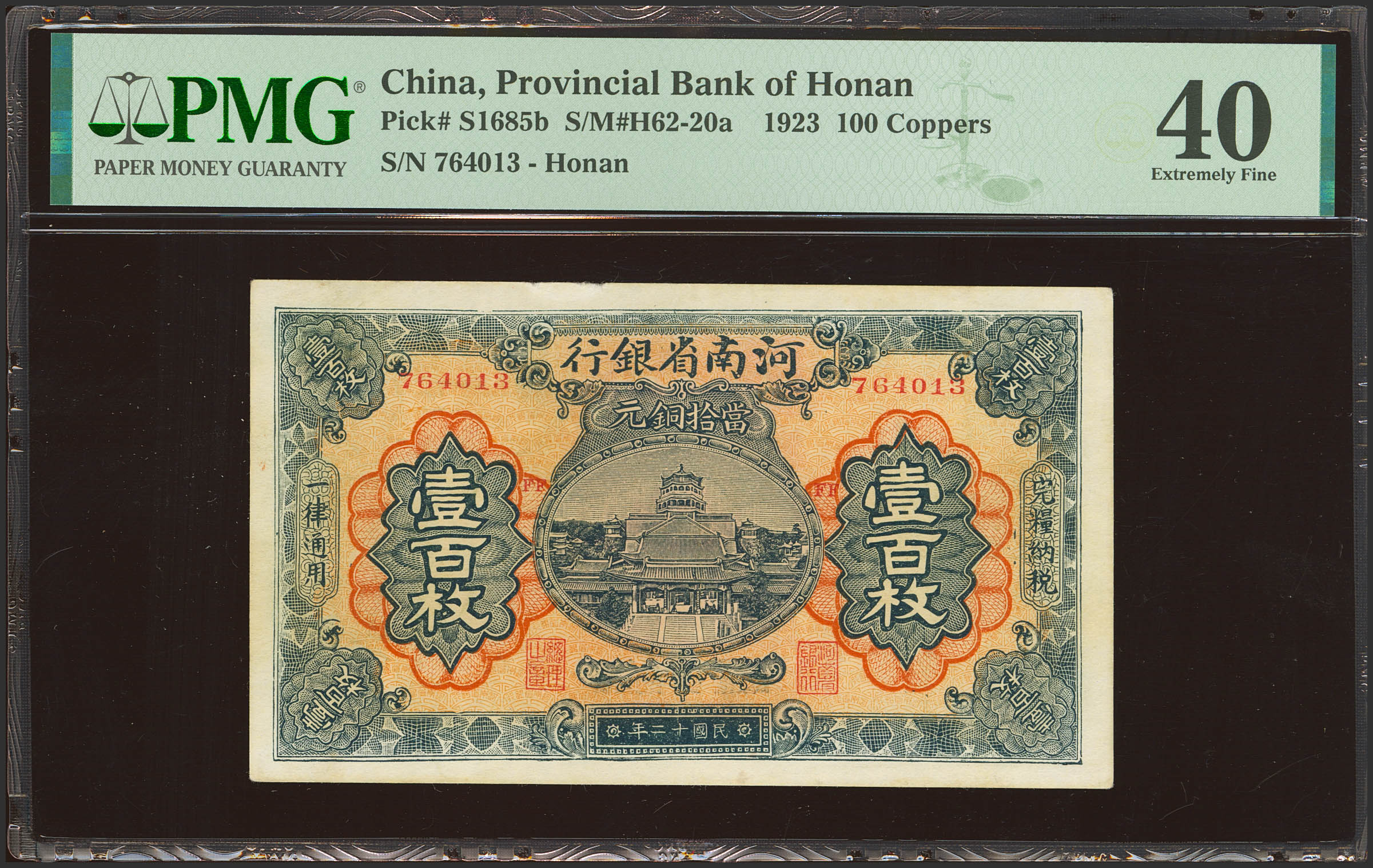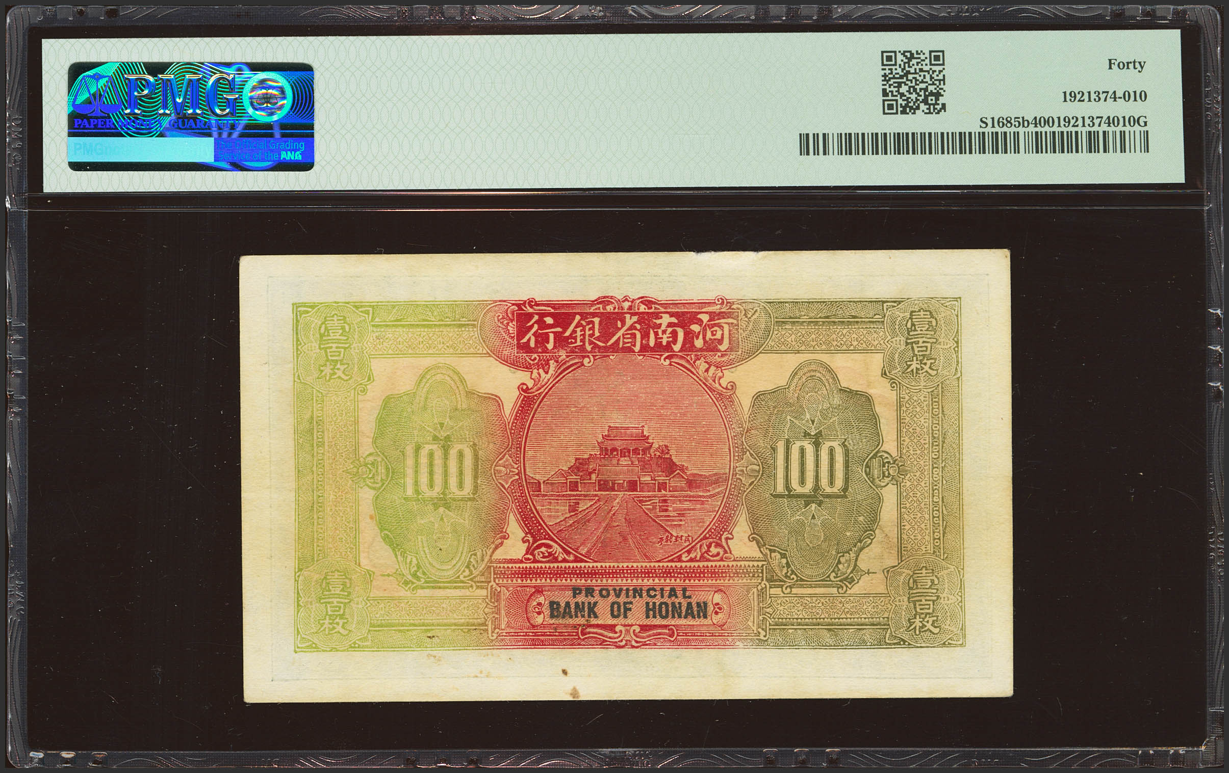 CHINA. 100 Coppers. 1923. Provincial Bank of Honan. (Pick: S1685a, SM: H62-20a). PMG40.