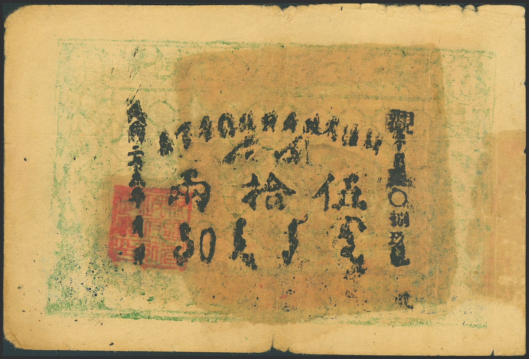 CHINA. 50 Taels. (1934ca). Xinjiang Sub-Prefecture Administration Finance Department Treasury. (Pick: S1780F). Tears. Very Fine.
