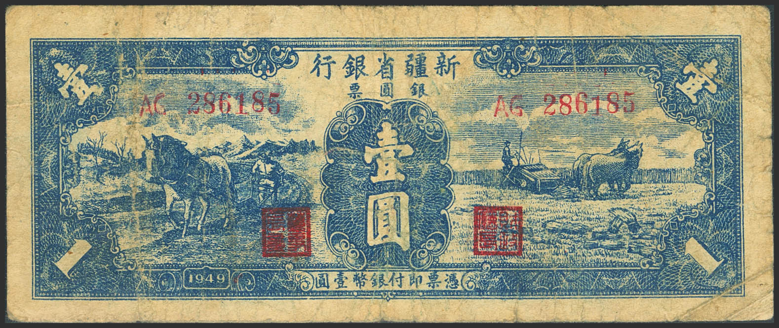 CHINA. 1 Silver Yuan. 1949. Sinkiang Provincial Bank. (Pick: S1803). Fine.