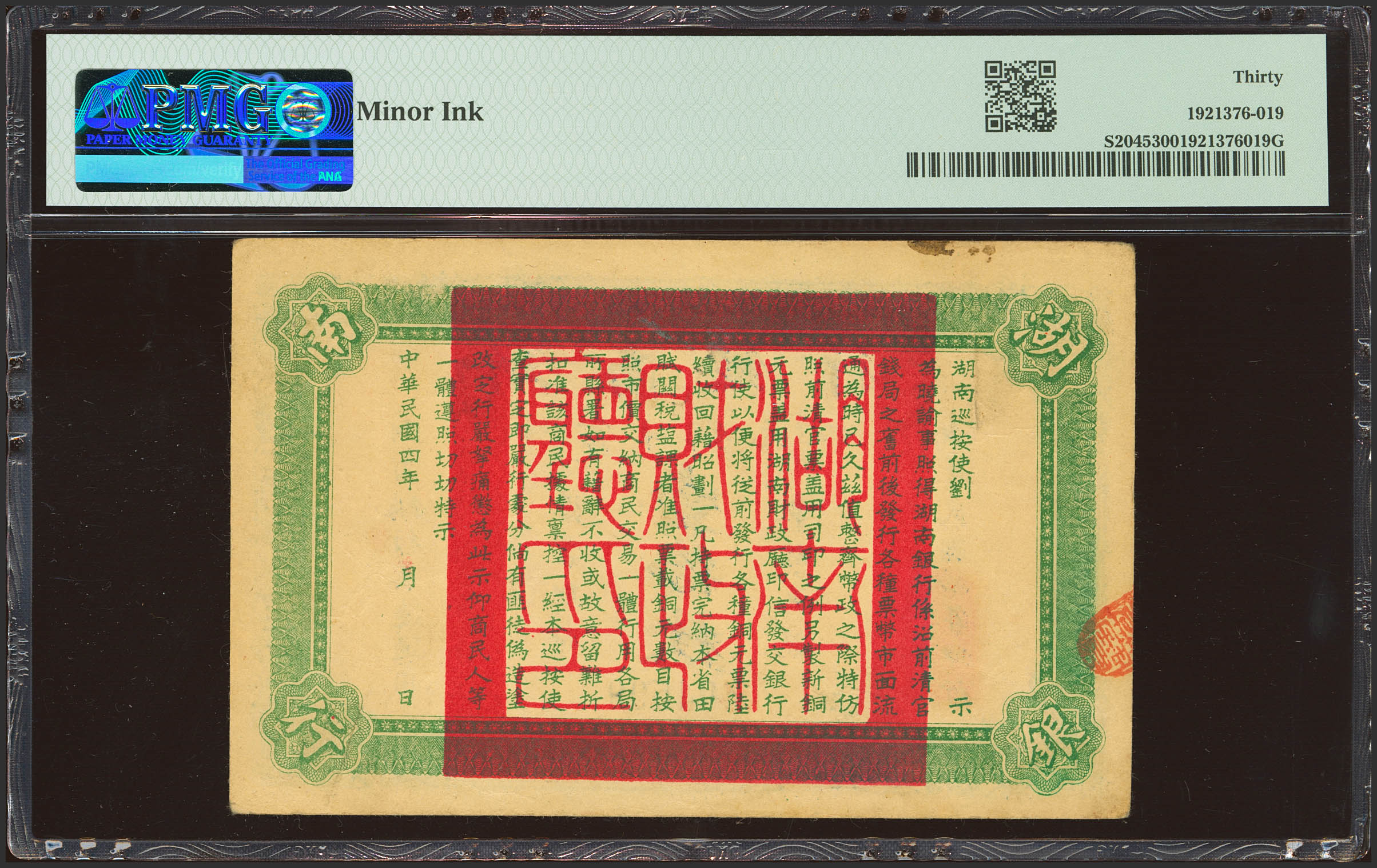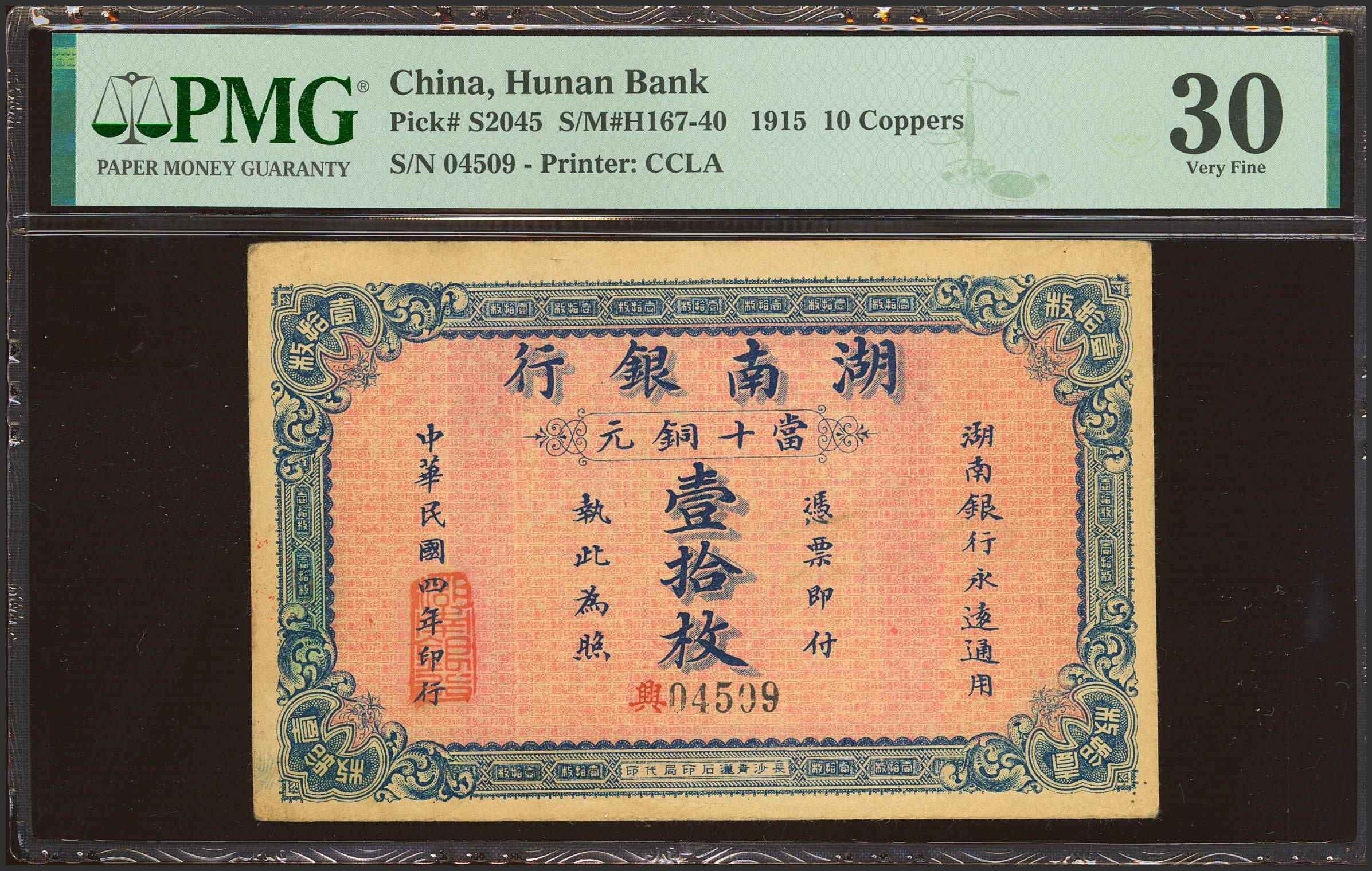 CHINA. 10 Coppers. 1915. Hunan Bank. (Pick: S2045, SM: H167-40). PMG30 (minor ink).