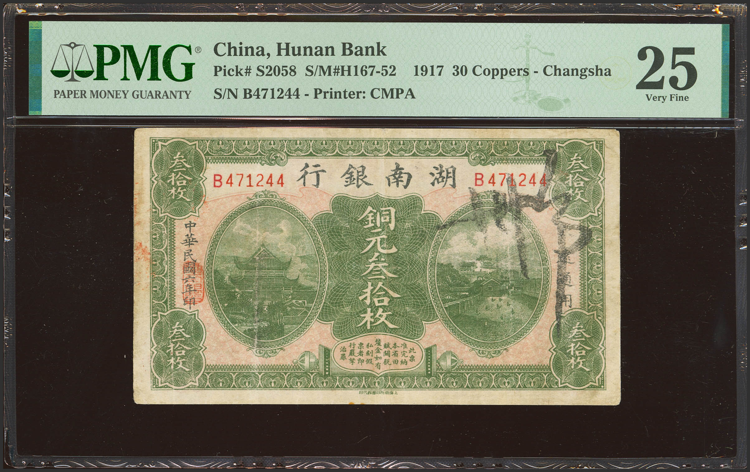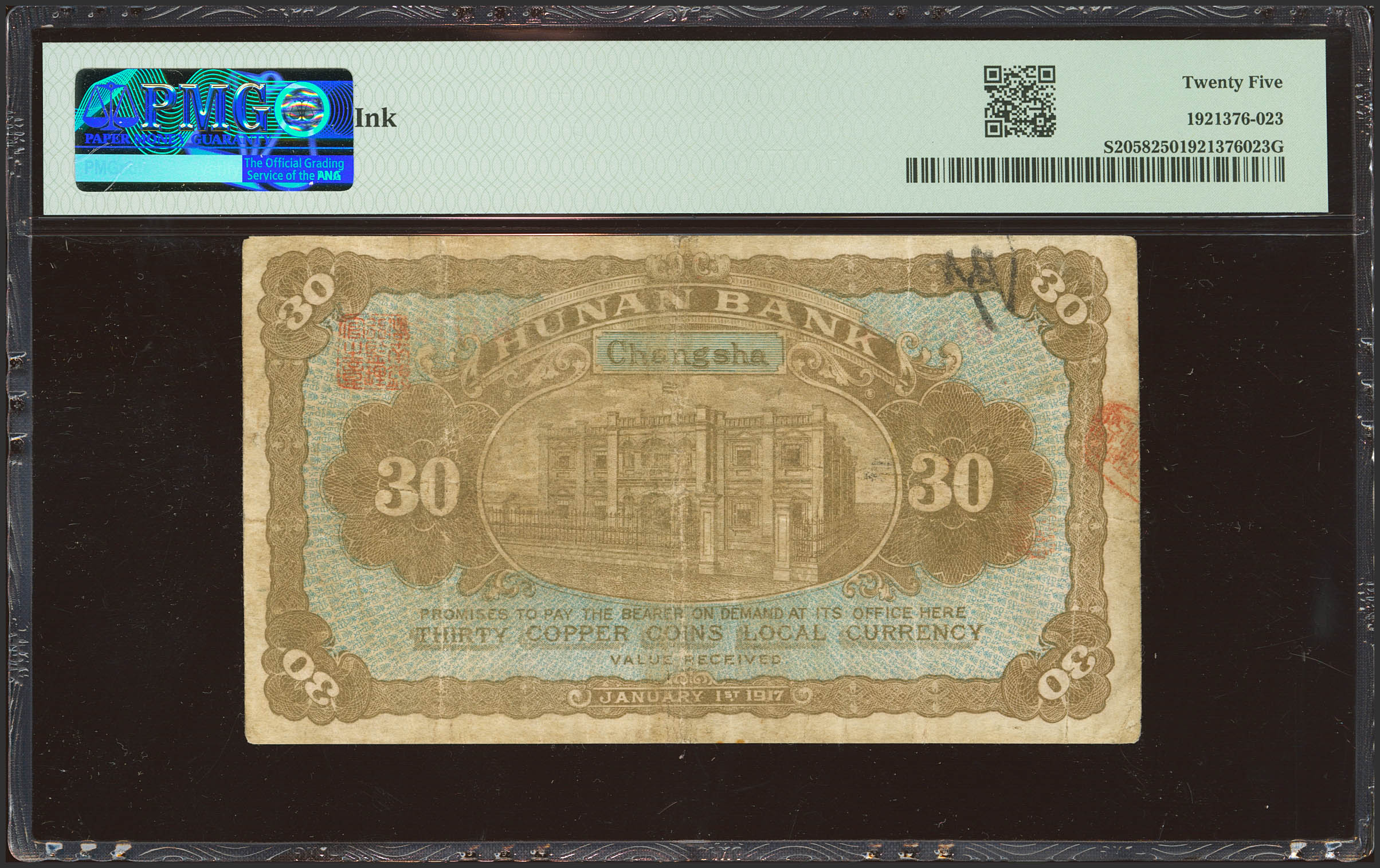 CHINA. 30 Coppers. 1 January 1917. Hunan Bank. (Pick: S2058, SM: H167-52). PMG25 (ink).