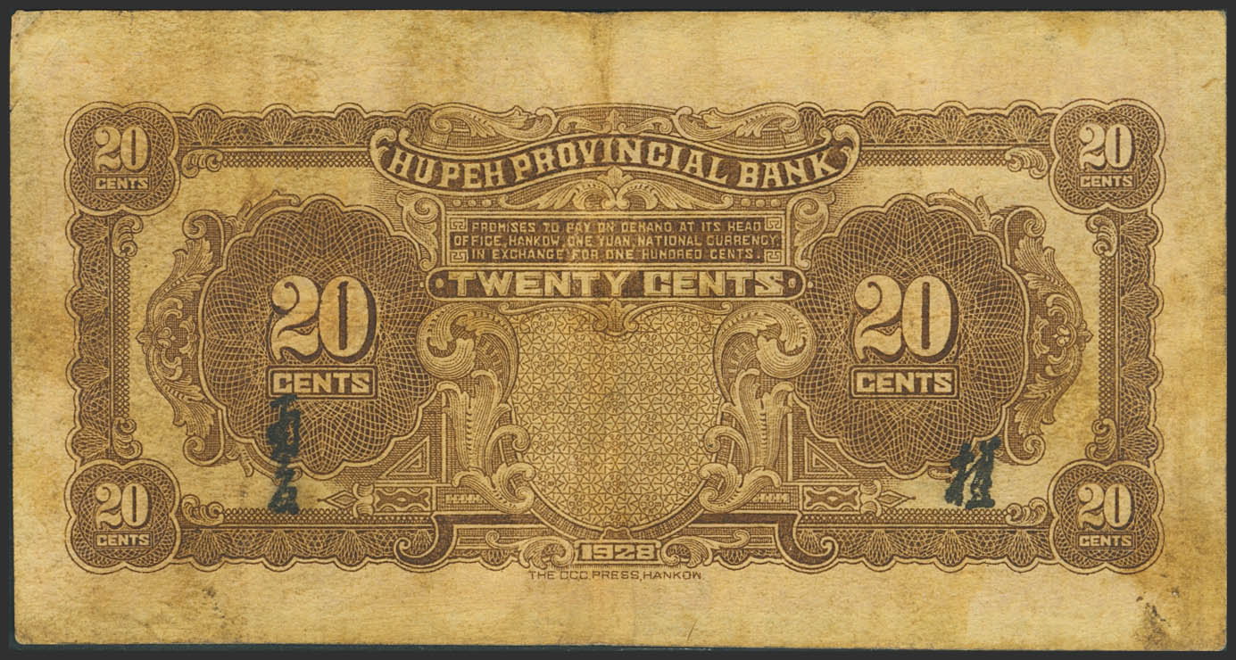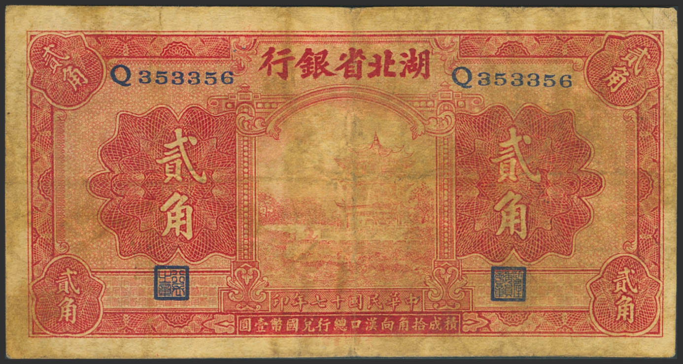 CHINA. 2 Chiao. 1928. Hupeh Provincial Bank. (Pick: S2102). Fine.