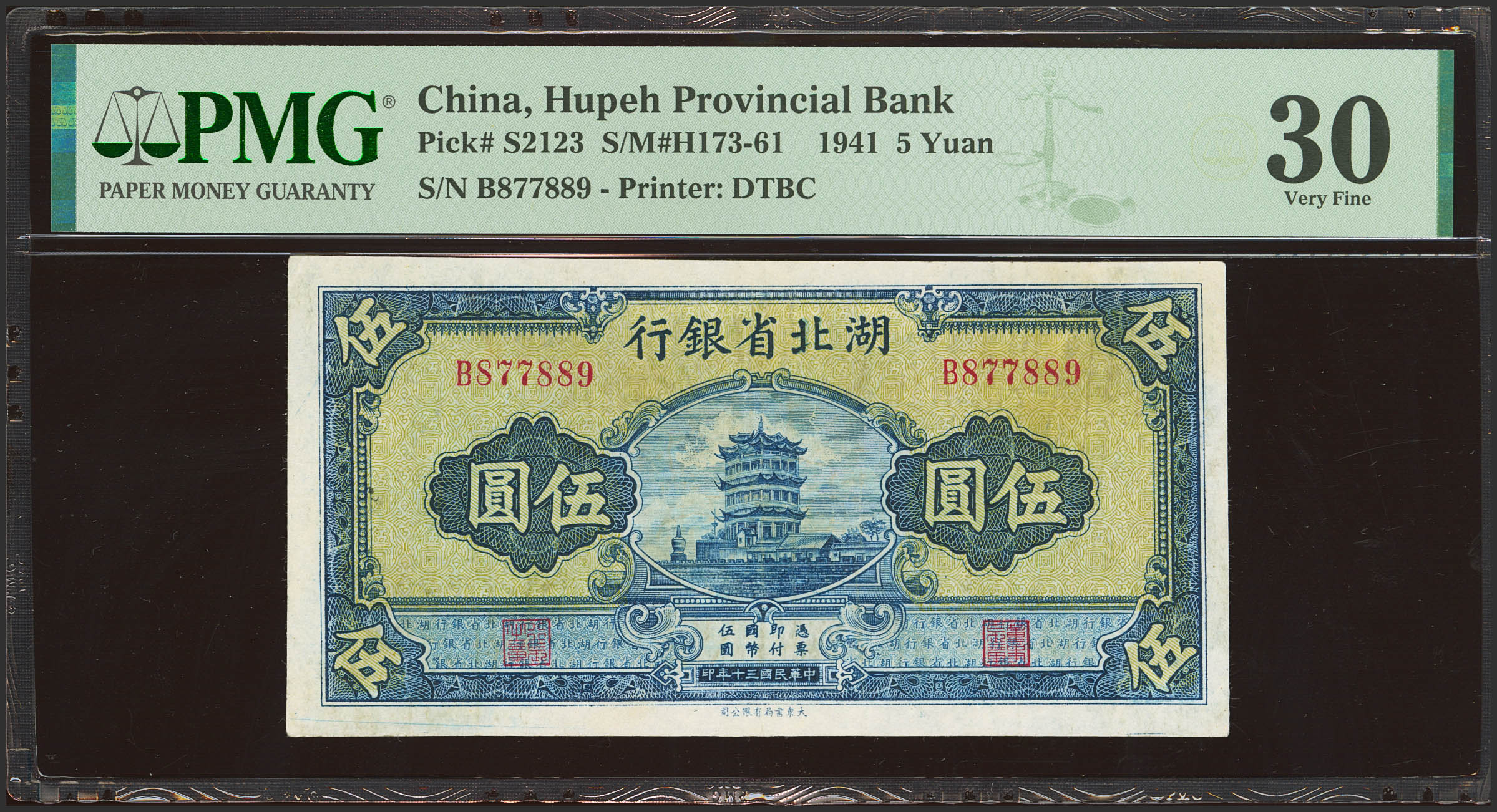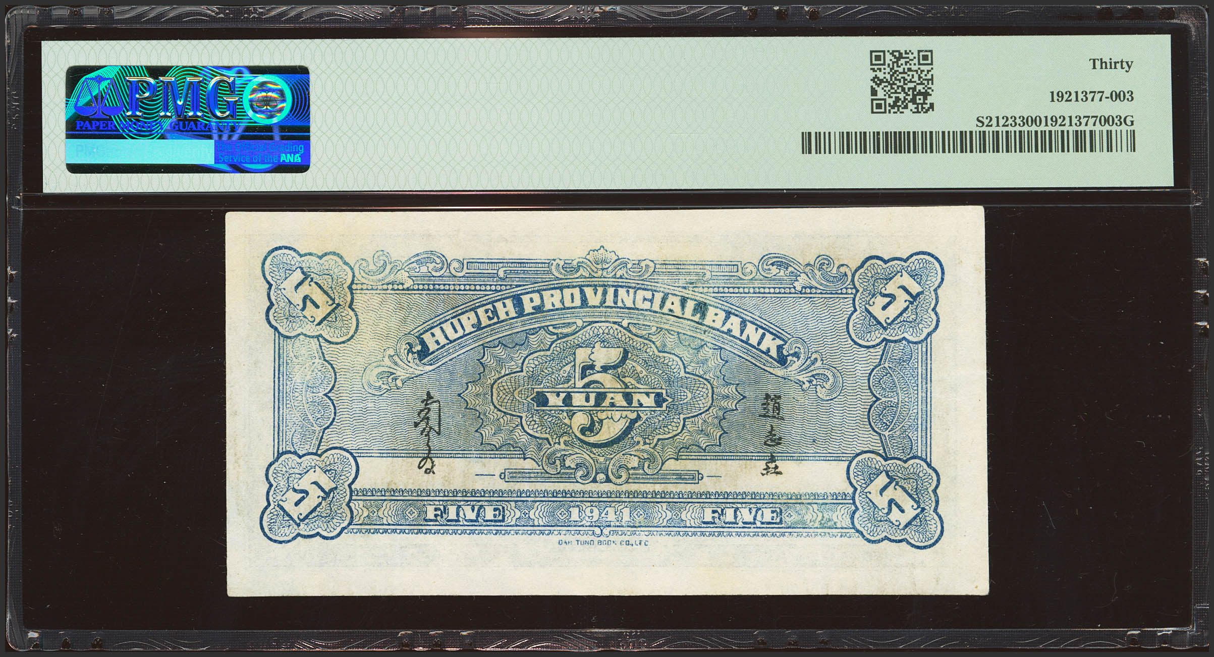 CHINA. 5 Yuan. 1941. Hupeh Provincial Bank. (Pick: S2123, SM: H173-61). PMG30.