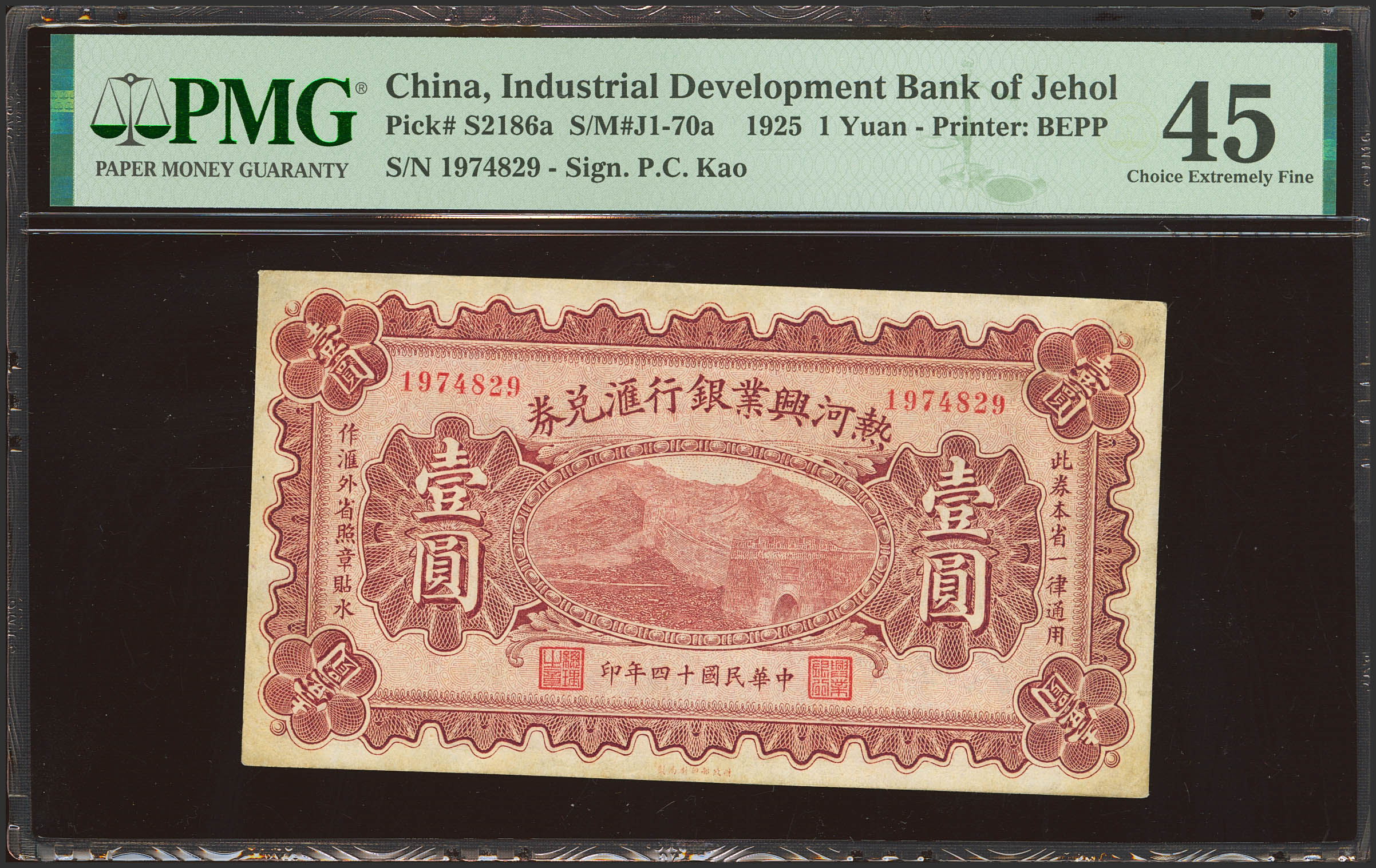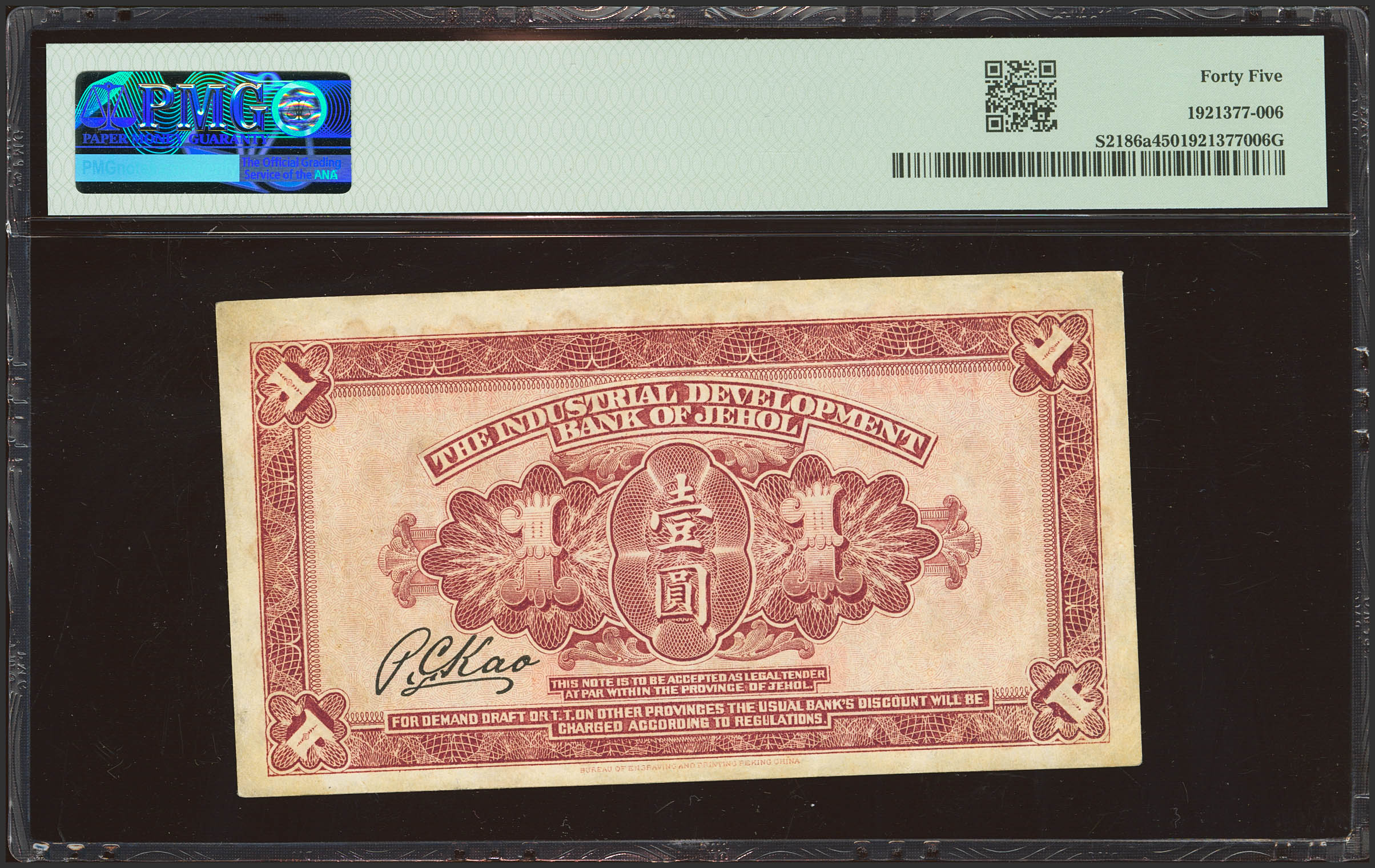 CHINA. 1 Yuan. 1925. Industrial Development Bank of Jehol. (Pick: S2186a, SM: J1-70a). PMG45.