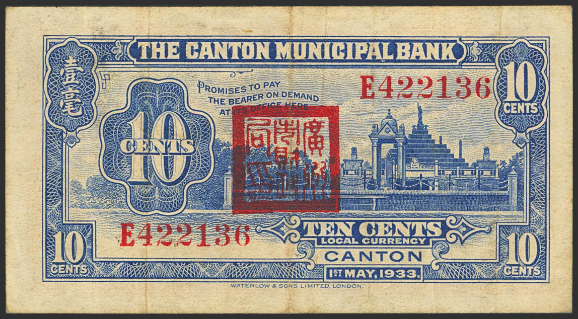 CHINA. 10 Cents. May 1, 1933. Canton Municipal Bank. Signatures of Huang and Ch'en. (Pick: S2276b). Extremely Fine.